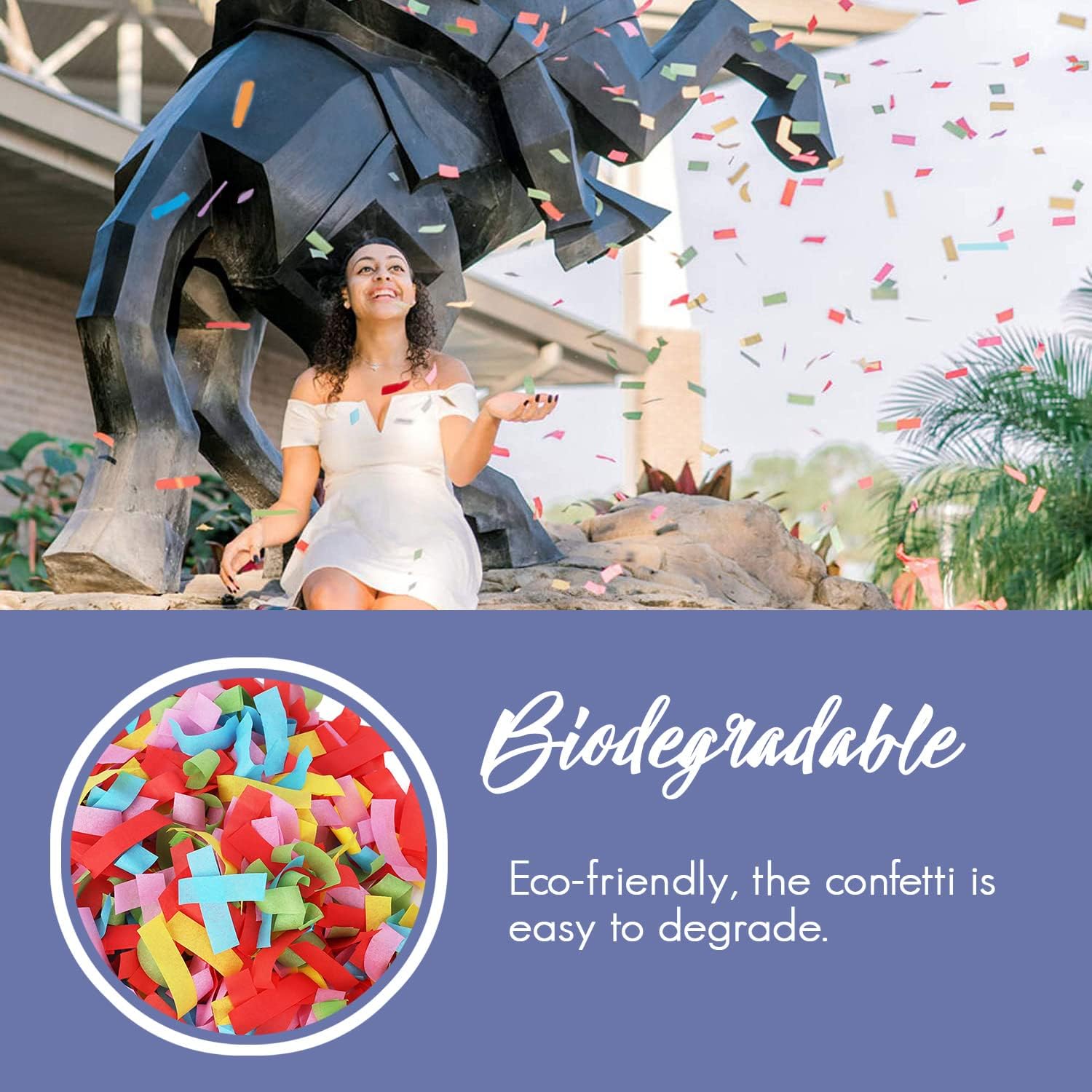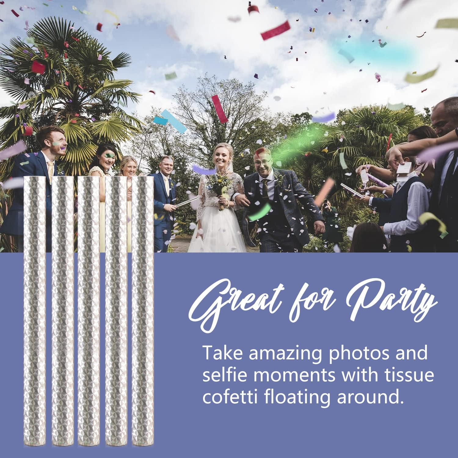 • Celebrations : Immerse yourself and your guests in colorful tissue confetti; surprise your family and friends on their wedding, birthday, graduation party, championship games, award ceremony, confetti day and more