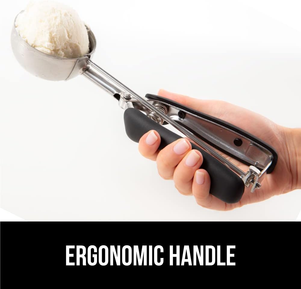 • EASY TO HOLD ERGONOMIC HANDLE: keep your hands and writs comfortable while you scoop; the ergonomic handle is constructed of soft touch rubber that is easy to grip and comfortable to hold; no more tired sore hands while scooping