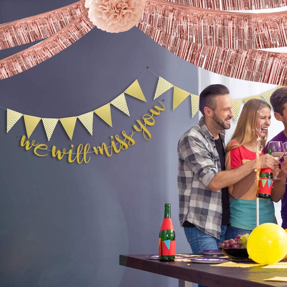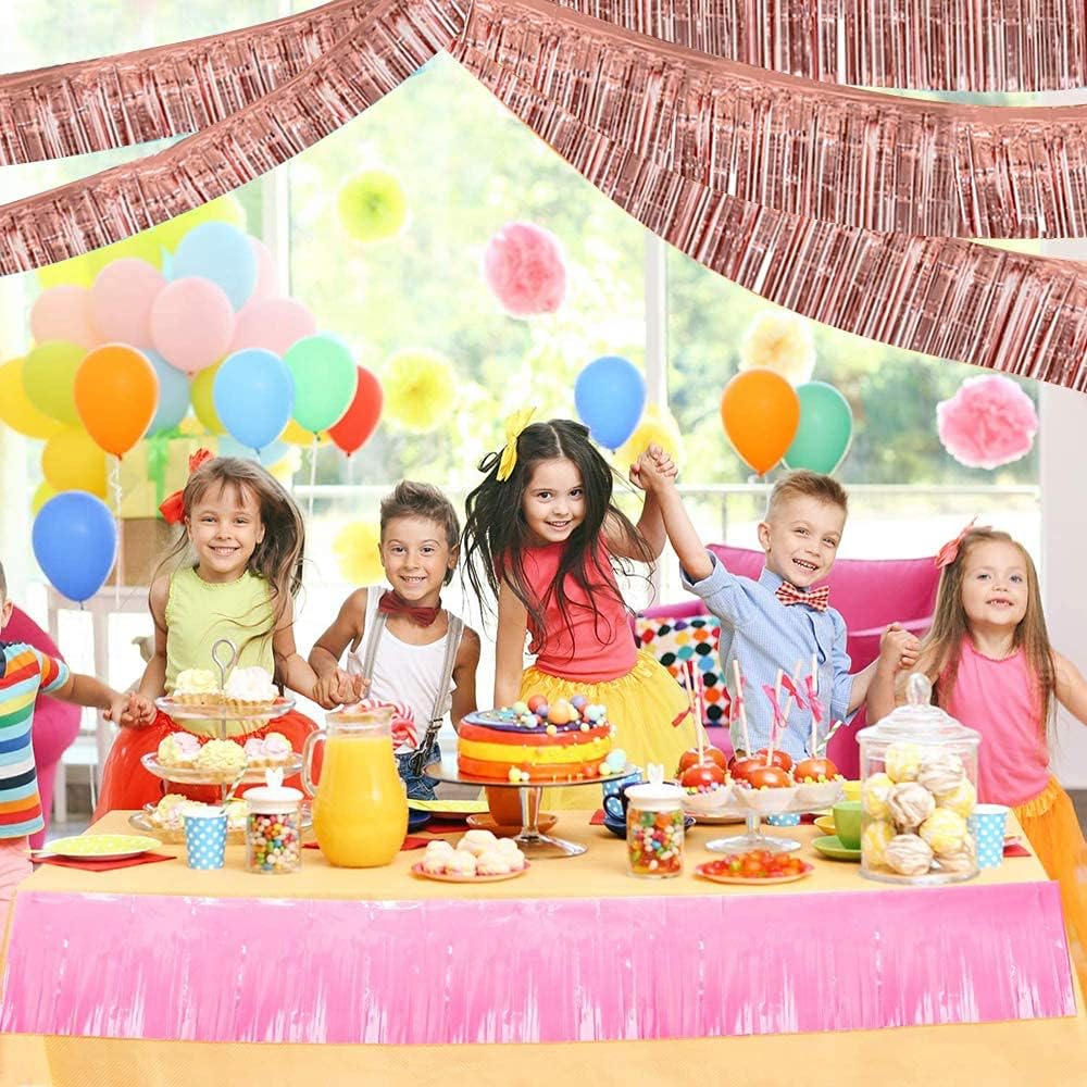 BEISHIDA 3 Packs 30 Feet Metallic Foil Fringe Garland Tinsel Streamers,Shiny Rose Gold Wall Hanging Tinsel Fringe Banners for Wedding Birthday Party Decoration Halloween Christmas New Year