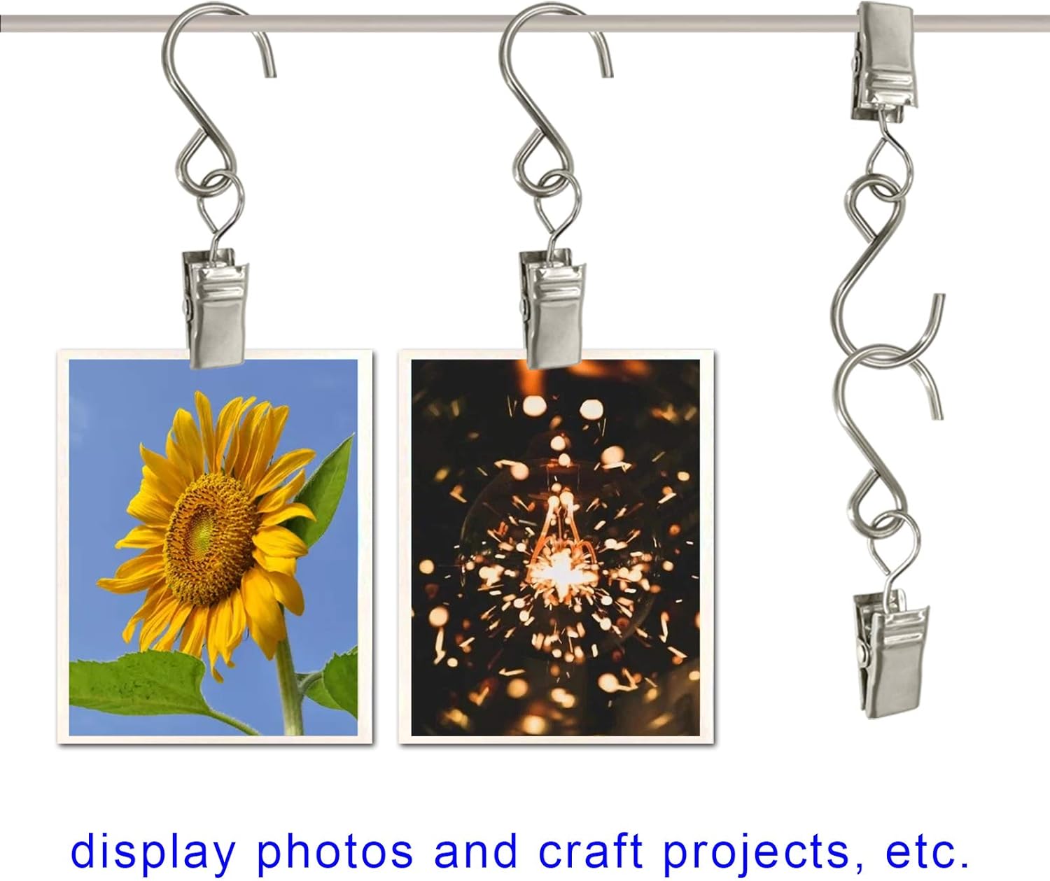 Stainless Steel S Hooks Curtain Clips, 50 Pack Hanging Party Lights Clips, Hangers Gutter Photo, Art Craft Display, 2.4 Inch Long, Silver