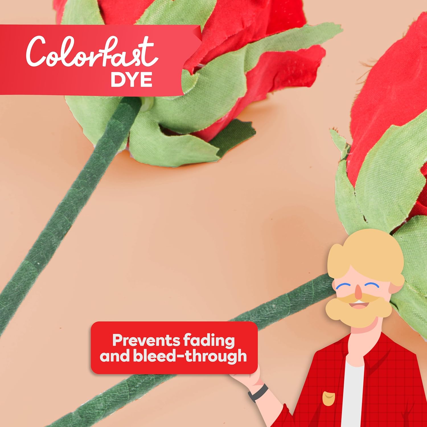 • This green tape for flowers sports a COLORFAST dye that prevents fading and bleed-through. Blends invisibly on green floral stems, allowing for seamless flower arrangements. Can also be used for DIY scrapbooking, giftwrapping, creating flower pens, crowns, and foam wreaths.