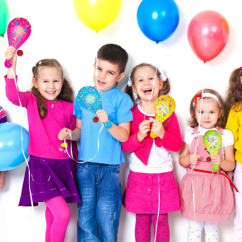 • VIBRANT ASSORTMENT: With confetti designs and a vibrant pop of color, these paddleballs make playtime memorably delightful for kids. Every set comes with an assortment of vibrant neon colors including blue, green, yellow, and pink.