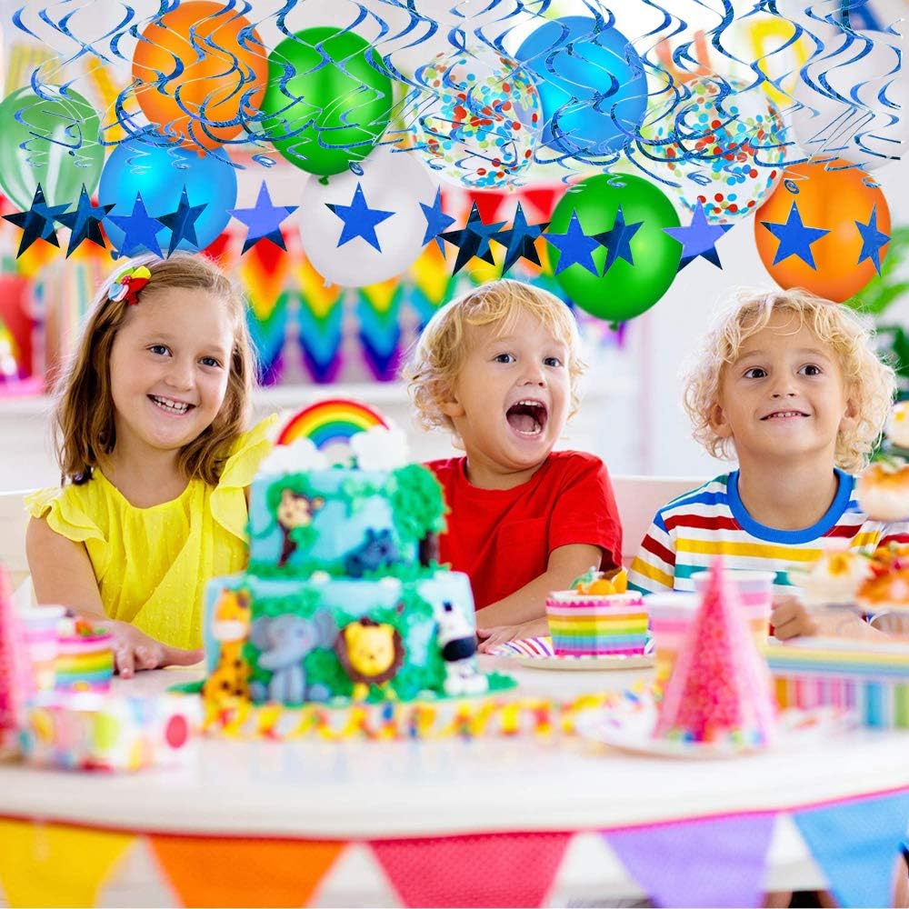 • PACKAGE INCLUDE: A total of 15 pcs hanging swirl decorations, including 15 blue double swirls and 15 swirls with PVC star. There are 15 strings in total, each of which is connected with a blue double swirls and a blue PVC star. Flexible swirls, hanging length can extend to approx 36"/91cm long.