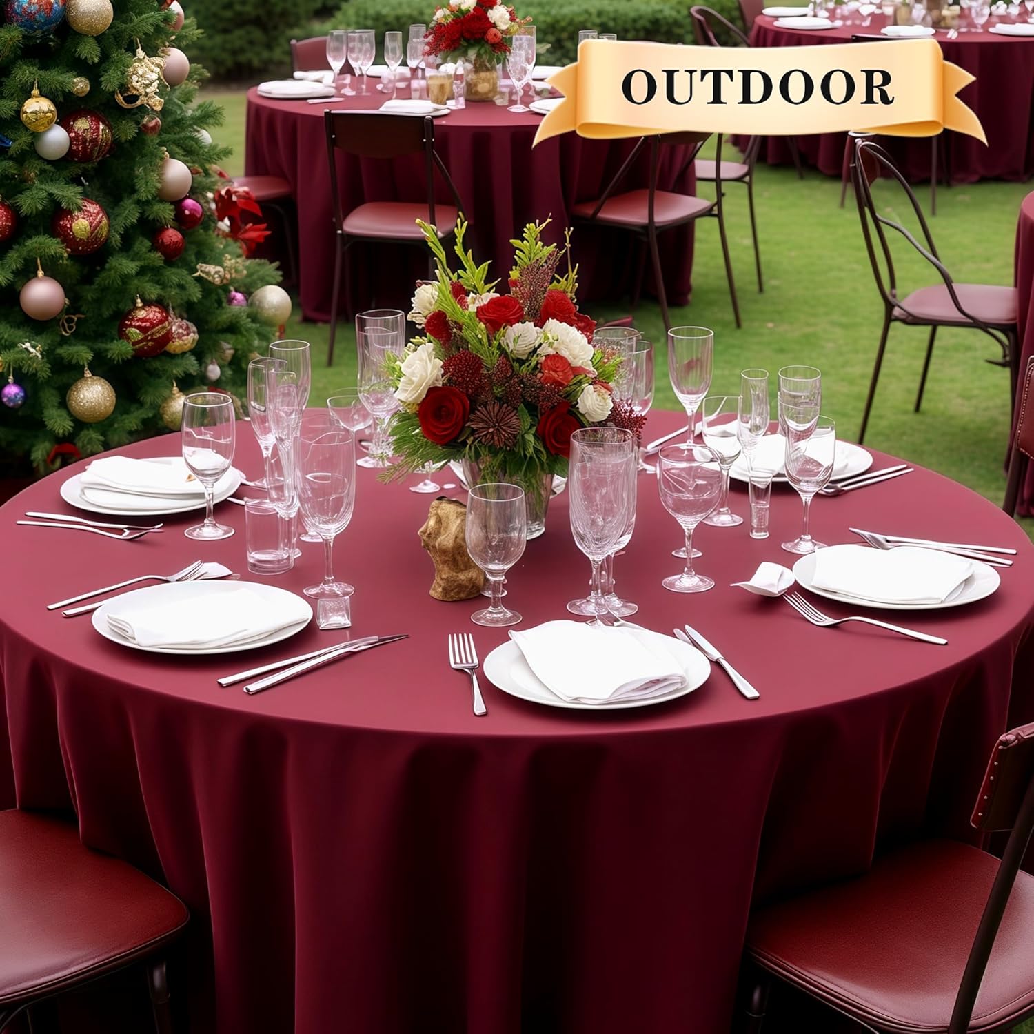 sancua Round Tablecloth - 108 Inch - Water Resistant Spill Proof Washable Polyester Table Cloth Decorative Fabric Table Cover for Dining Tables, Buffet Parties and Camping, Burgundy