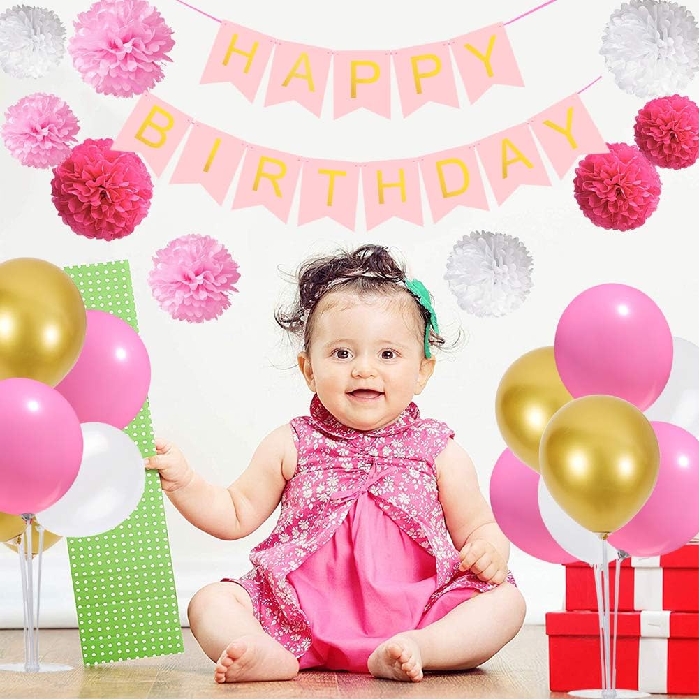 • Package Includes: The balloon stand kit includes 4 reusable balloon centerpiece table decorations and 12 inch 32 pcs Latex Balloons(12 pink balloons,12 white balloons,8 gold balloons),glue point dots,balloon pump,balloon clips,and tie tool.You don’t need to waste money to buy balloons