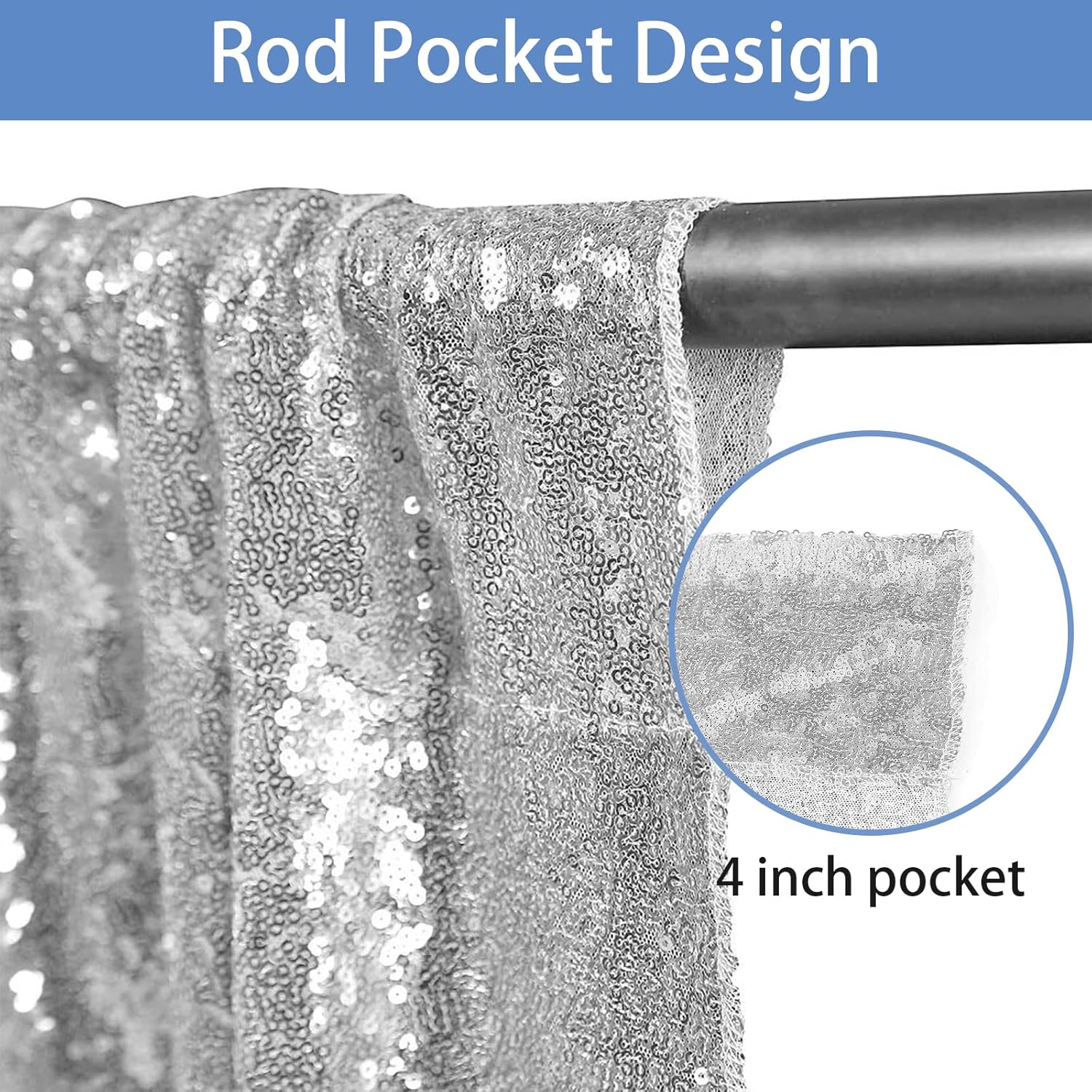 Hahuho Silver Sequin Backdrop Curtain, 4PCS 2FTx8FT Glitter Backdrop Curtain for Parties, Christmas, Wedding, Party Decoration(4 Panels, 2FT x 8FT, Silver