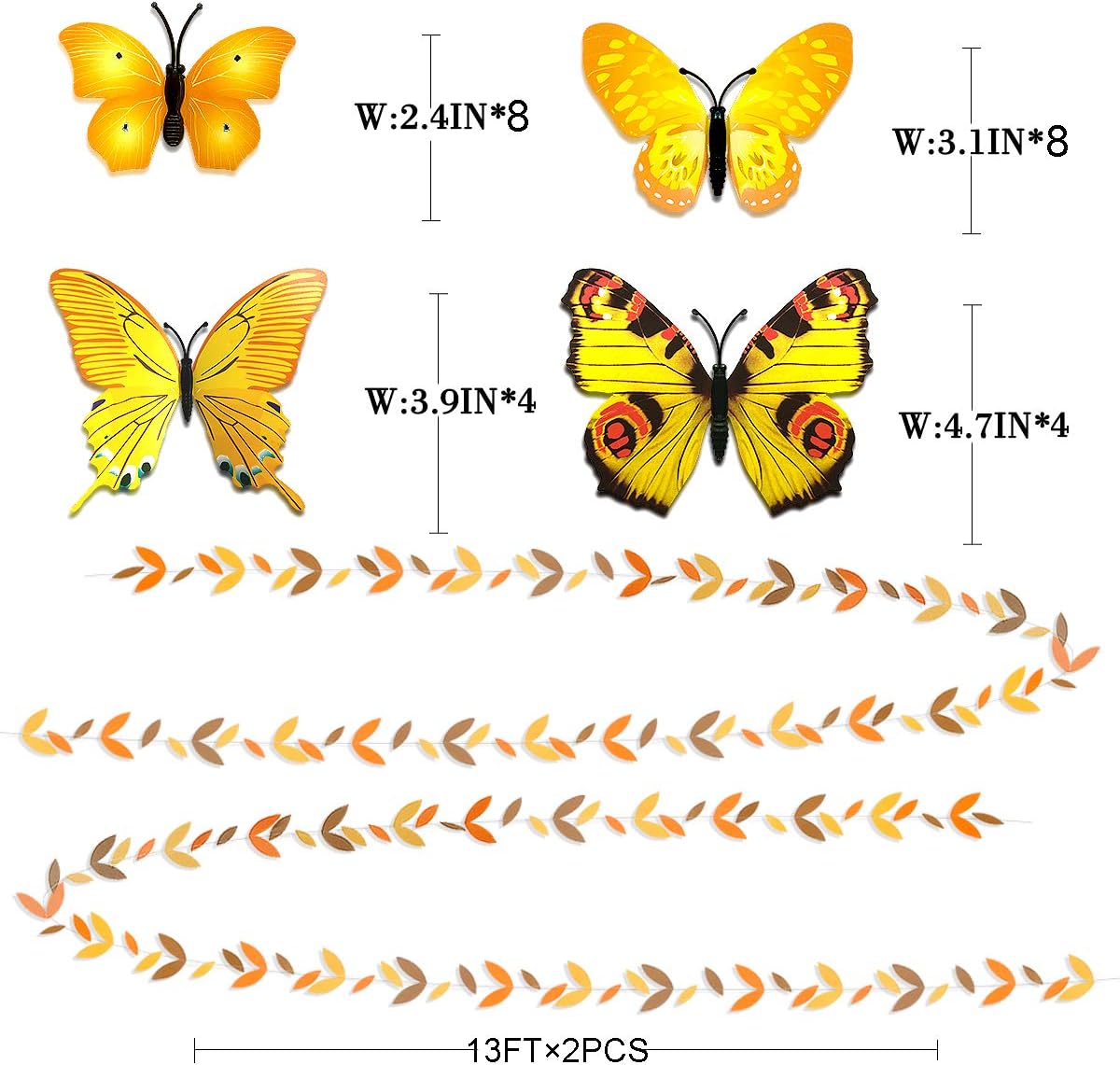 • 💛UNIQUE DESIGN- Decorative paper lantern with yellow orange 3D butterfly decals stickers and fall color leaf garlands,This design making your fall theme party decoration more vibrant and gorgeous,Imagine the look as they walk into your theme party to see the beautiful fall decorations that you so deliberately decided upon.