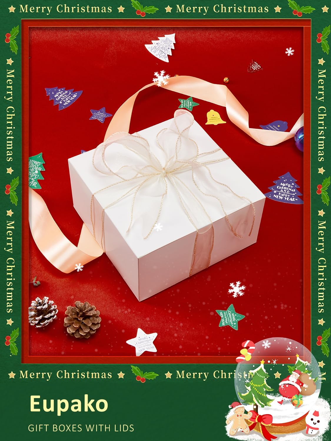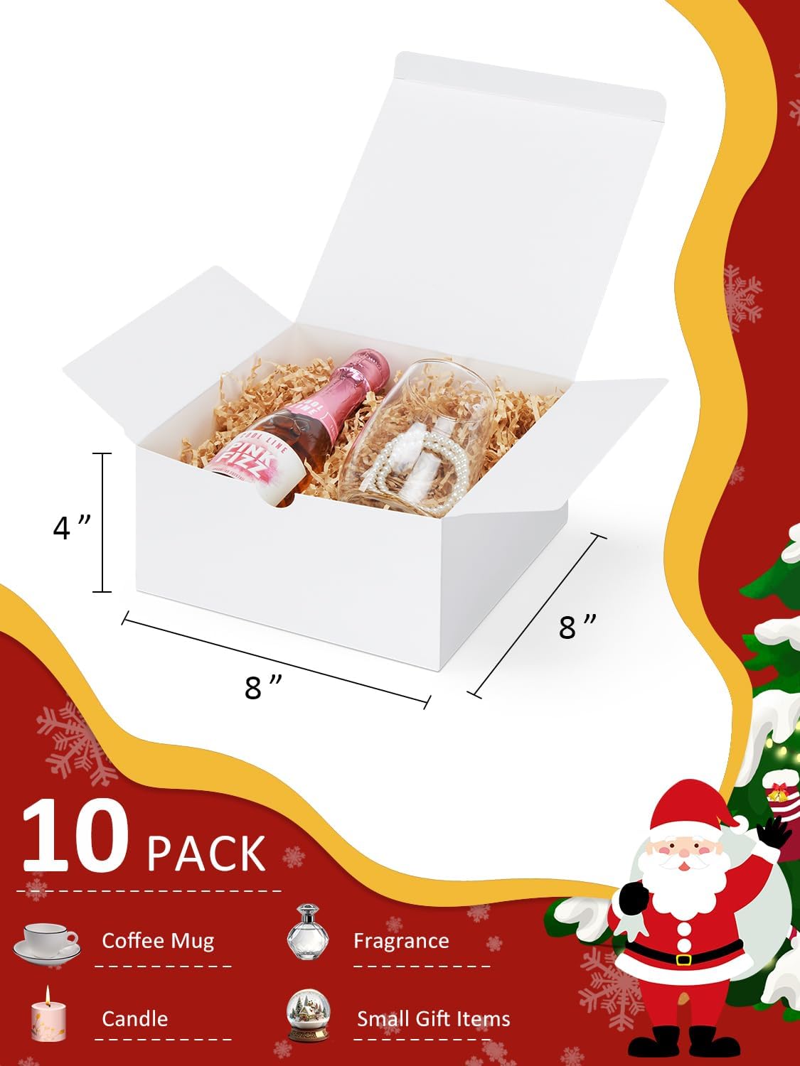 • Gift Boxes 10 Pack 8x8x4: Eupako white gift boxes are made of high quality kraft paper, sturdier and more durable than others in bearing capacity with a elaborate bottom structure. Gift Box Size: 8x8x4 Inches