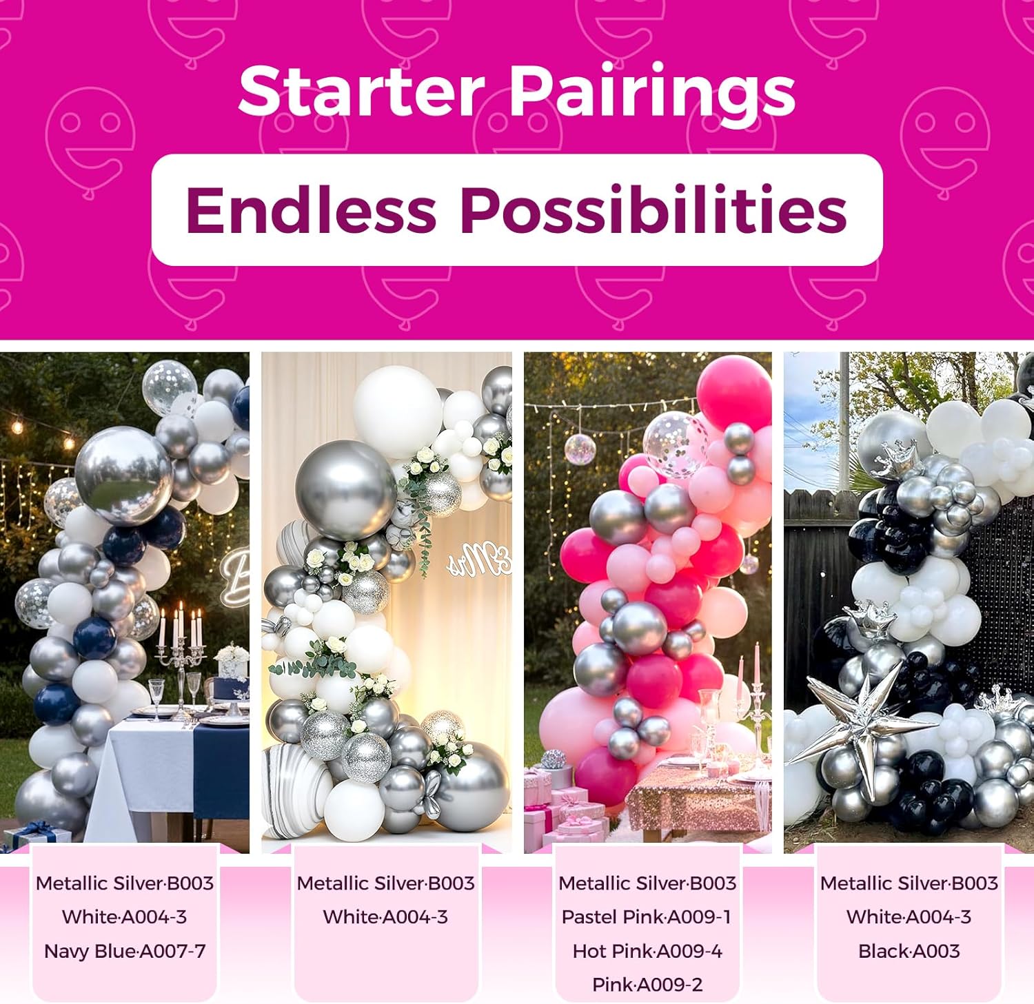 • 【Set Includes】- Each sets contains 100pcs silver party balloons of 12 inches and 1pcs silver ribbon (33 feet total).The right amount quantity and most suitable color for each party decoration.