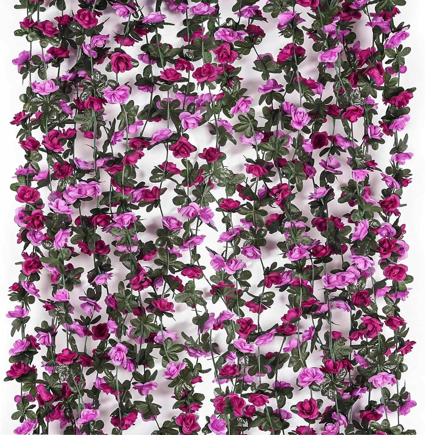 • Size: With total length 74FT, each floral rose garland 8.2 FT Long, flowers 1.6 inches in diameter, each purple flower vine holds about 45 leaves, 45 flowers