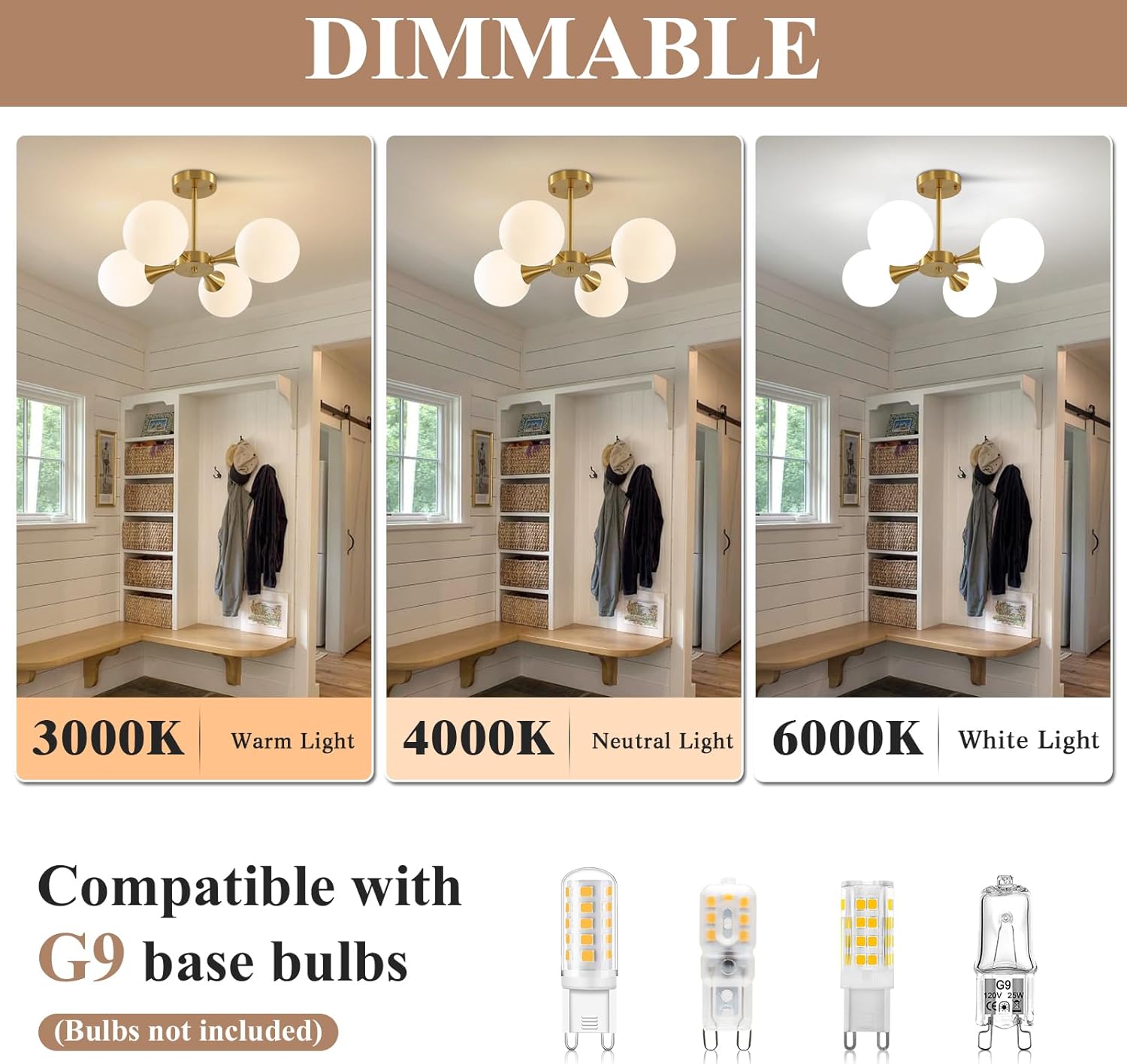 • ✽【Light Bulb Included】It come with four G9 led light bulb as a small gift. Length: 19.7” (50cm), height: 11.8” (30cm). Globe diameter: 5.9” (15cm), Canopy diameter: 4.7” (12cm). Light source: G9 light bulb, Voltage: 110-250V for worldwide. UL listed lamp socket and UL listed electric wire.