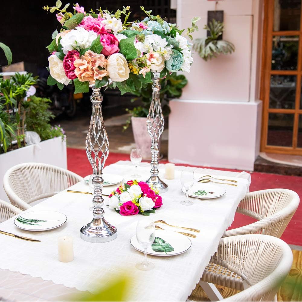 • WEDDING DECORATIONS: These wedding arrangement centerpieces are perfect for your wedding ceremony, wedding party and wedding road-leading. They match fresh flowers, artificial bouquets, flower balls and wedding candles, which can beautifully decorate your wedding moments.