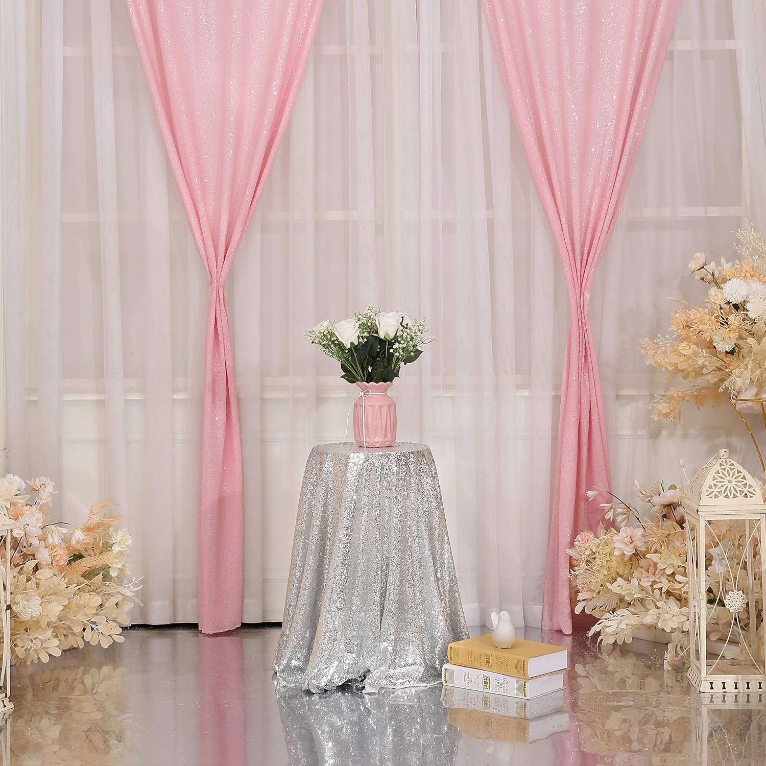 • ❤Pink Sequin Backdrop:100% polyester mash backing with high density sequins on top make your party sparkly and cute.