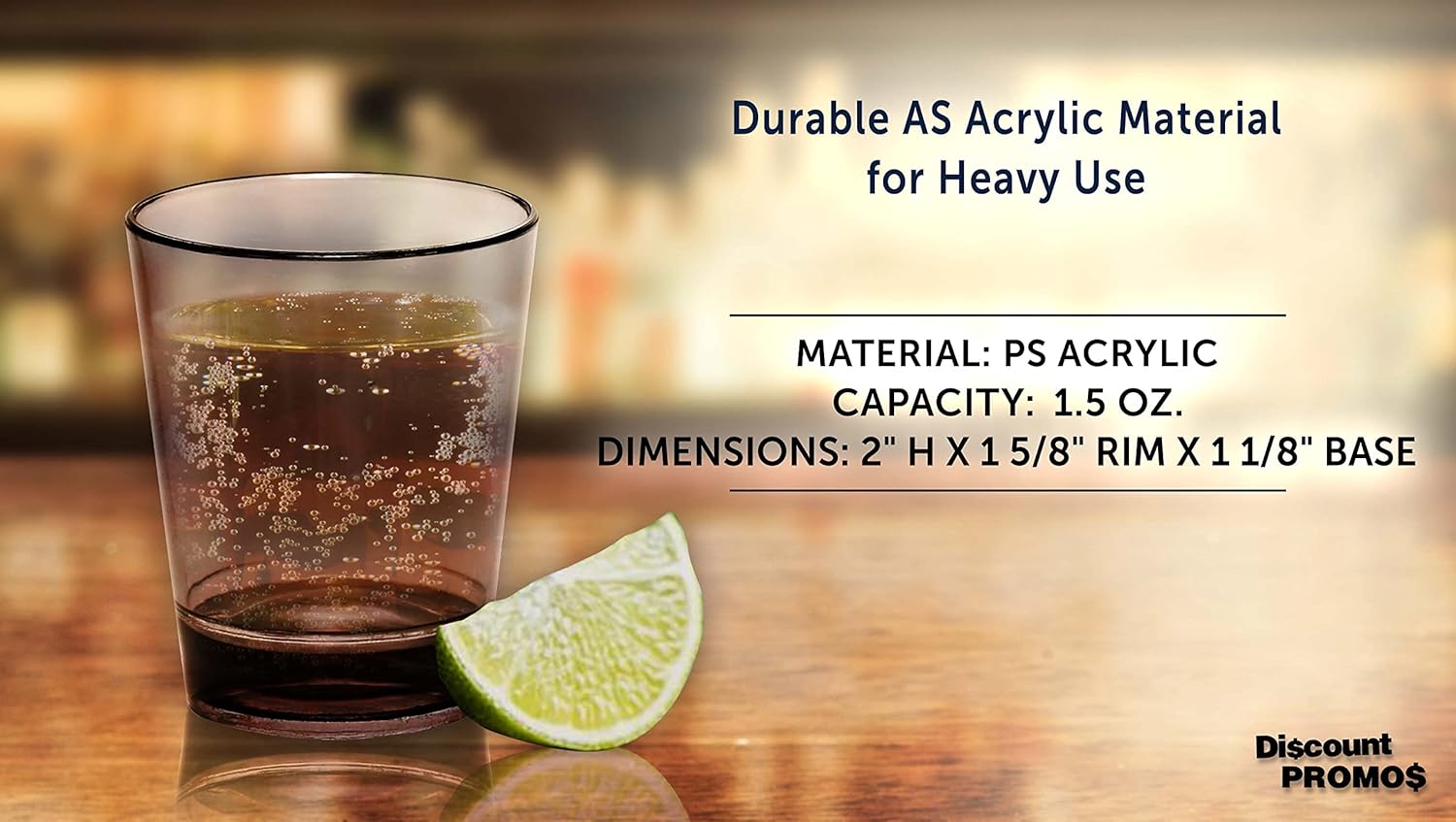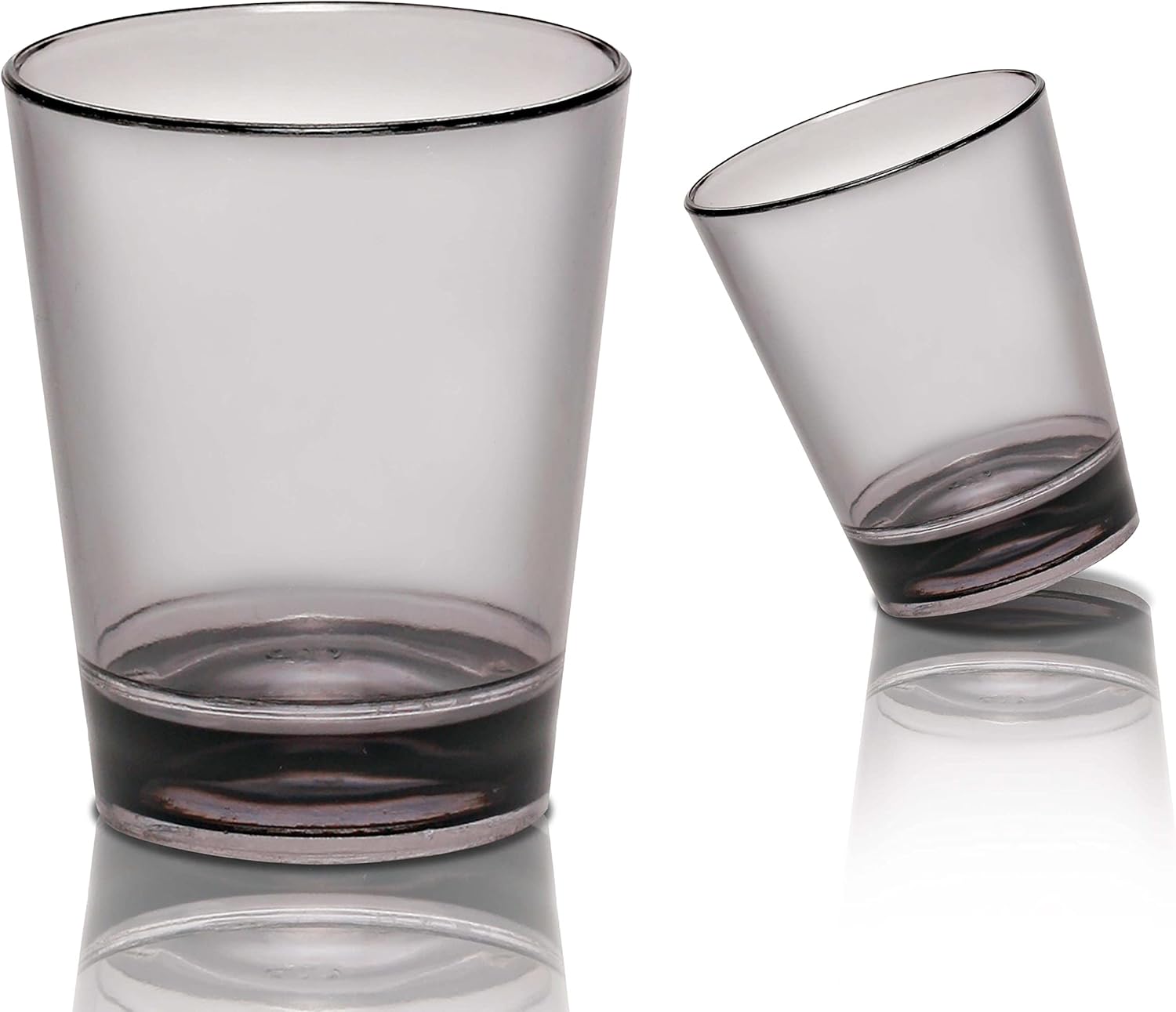 • DURABLE but INEXPENSIVE - These cheap shot glasses have thick bases along with a sheer rim to portray only the classiest look for your barware! 1.5 oz. Translucent Plastic shot glasses are strong so they won't crack, chip, or break easily. these cheap shot glasses have thick bases along with a sheer rim to portray only the classiest look for your barware!