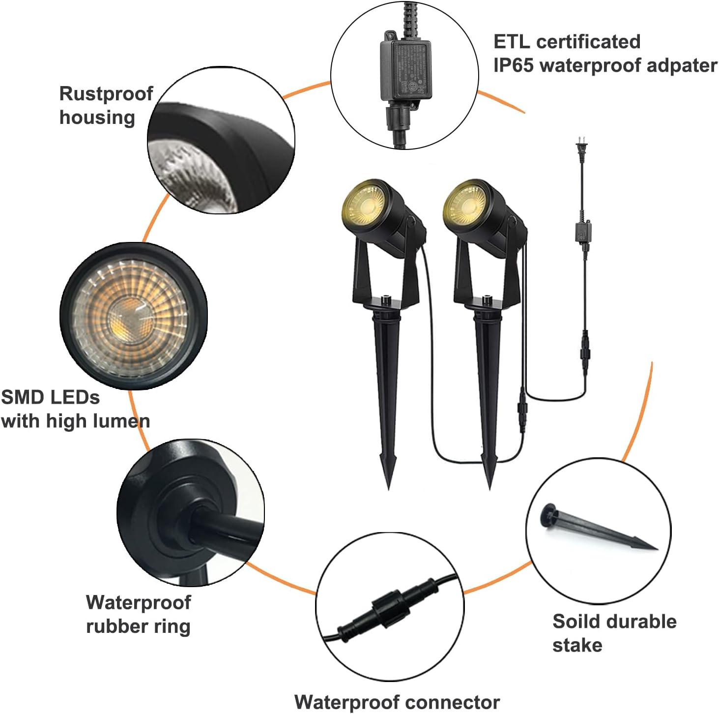 • 【Easy to Install, Plug and Play】Wired landscape lighting kits are includes 4 spot lights, 1 transformer and cables for fast and easy set up to brighten your yard. Just stick into the ground or use the included screws to mount on the wall, simple to install, hassle-free to use