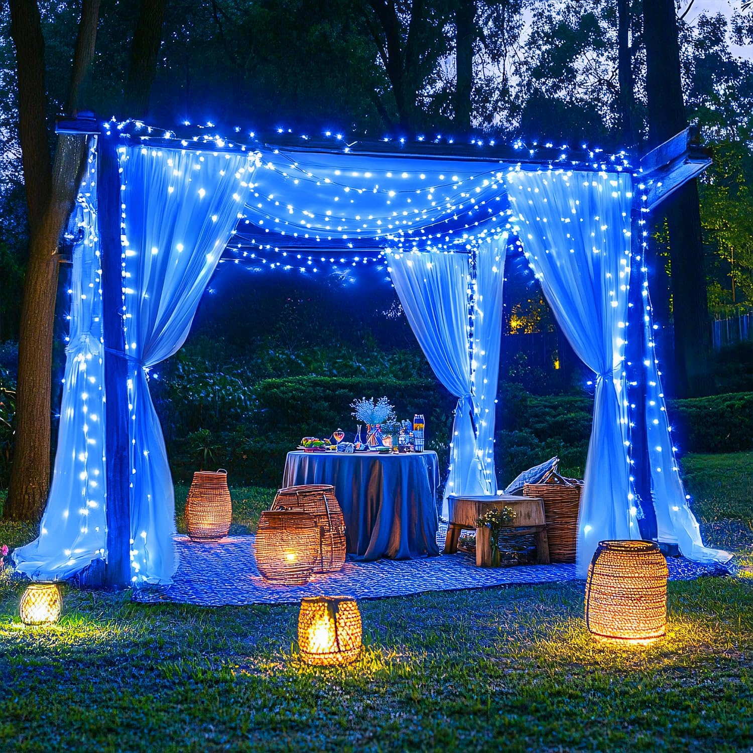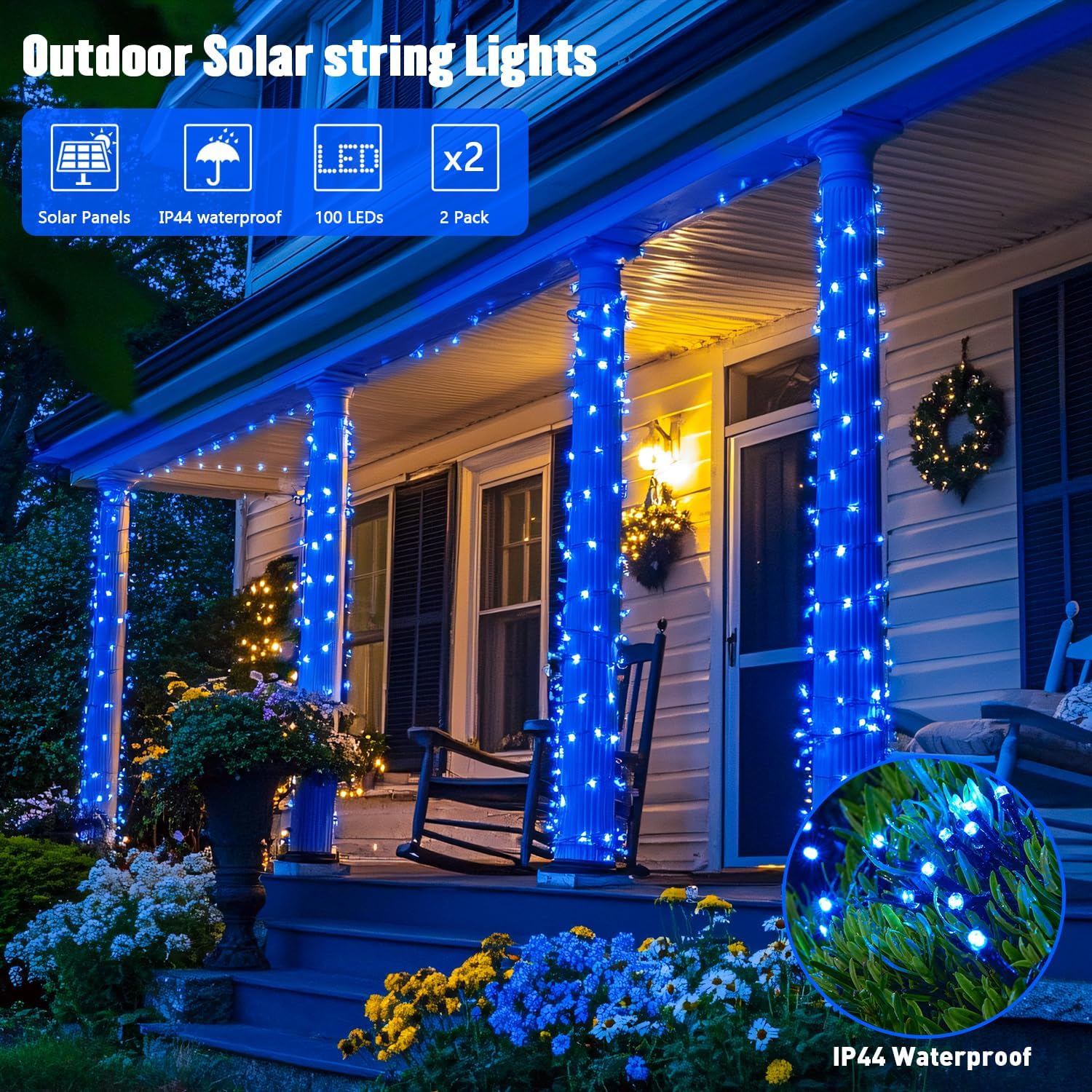 • Waterproof Solar Christmas Lights: 100 LED blue solar string lights are waterproof and can withstand rain and snow for indoor and outdoor use.