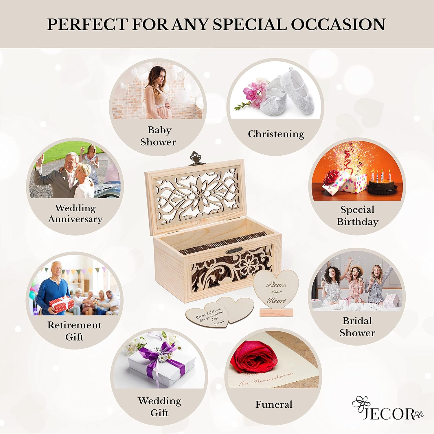 Alternative Guest Book Box - Wedding Guest book Alternative - 62 Large Wooden Hearts - Also for Baby Shower, Bridal Shower, Anniversary, Birthday, Retirement, Funeral Guest Book Alternatives, Pattern
