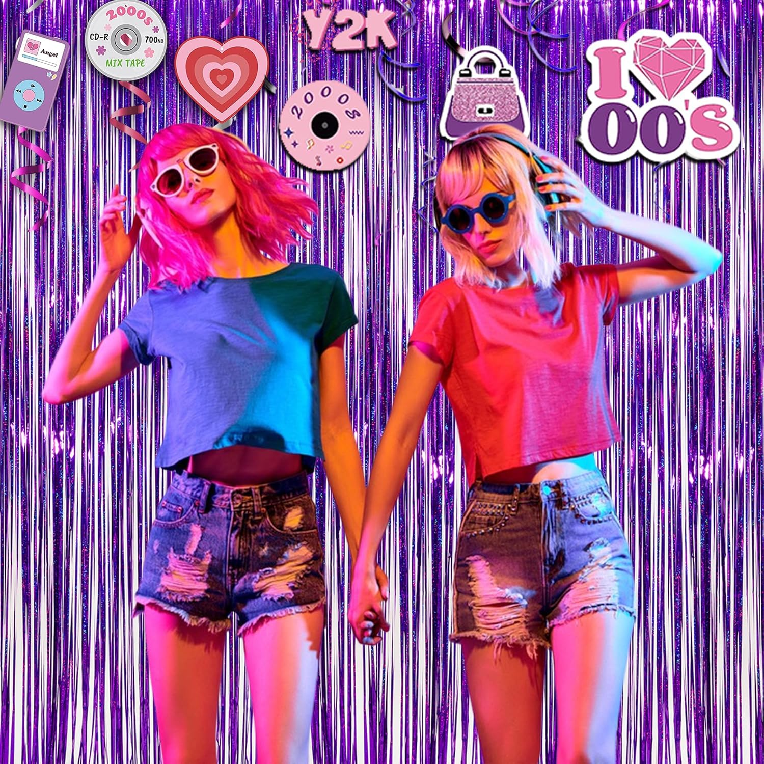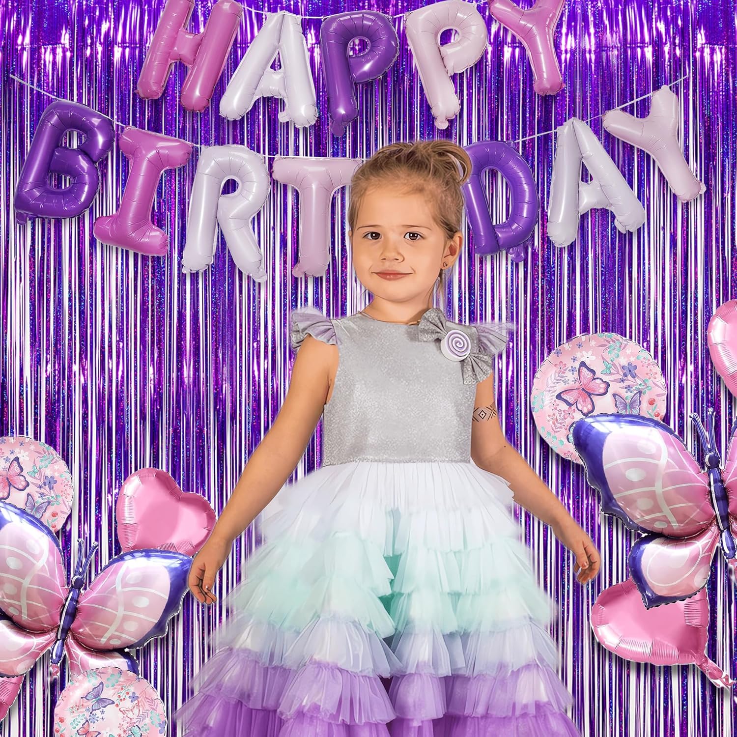 • Pack of 2( 3.2 ft x 8.2 ft for each pack), Greatril Brand purple foil fringe tinsel curtain mermaid euphoria themed party decorations.