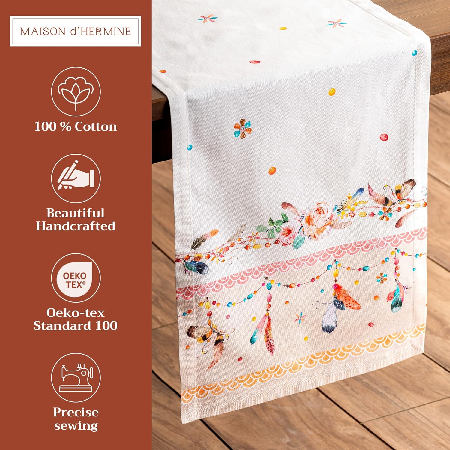 Maison d' Hermine Table Runner 100% Cotton Single Layer Table Runners 72 inches Long Decorative for Home Kitchen Dining Party Wedding Bridal Shower Spring Summer (Ibiza - Beige, 14.50" x 72")
