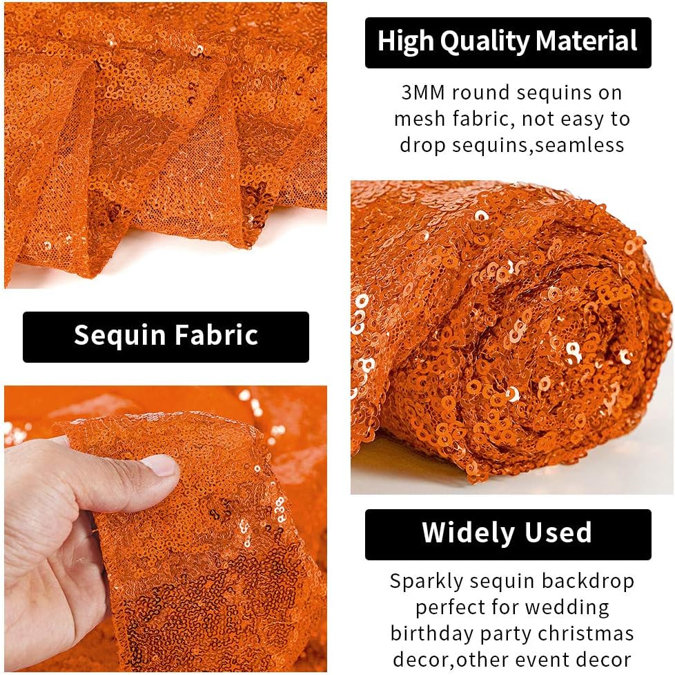 Hahuho Orange Sequin Backdrop Curtain, 2PCS 2FTx8FT Glitter Backdrop Curtain for Parties, Christmas, Wedding, Party Decoration(2 Panels, 2FT x 8FT, Orange
