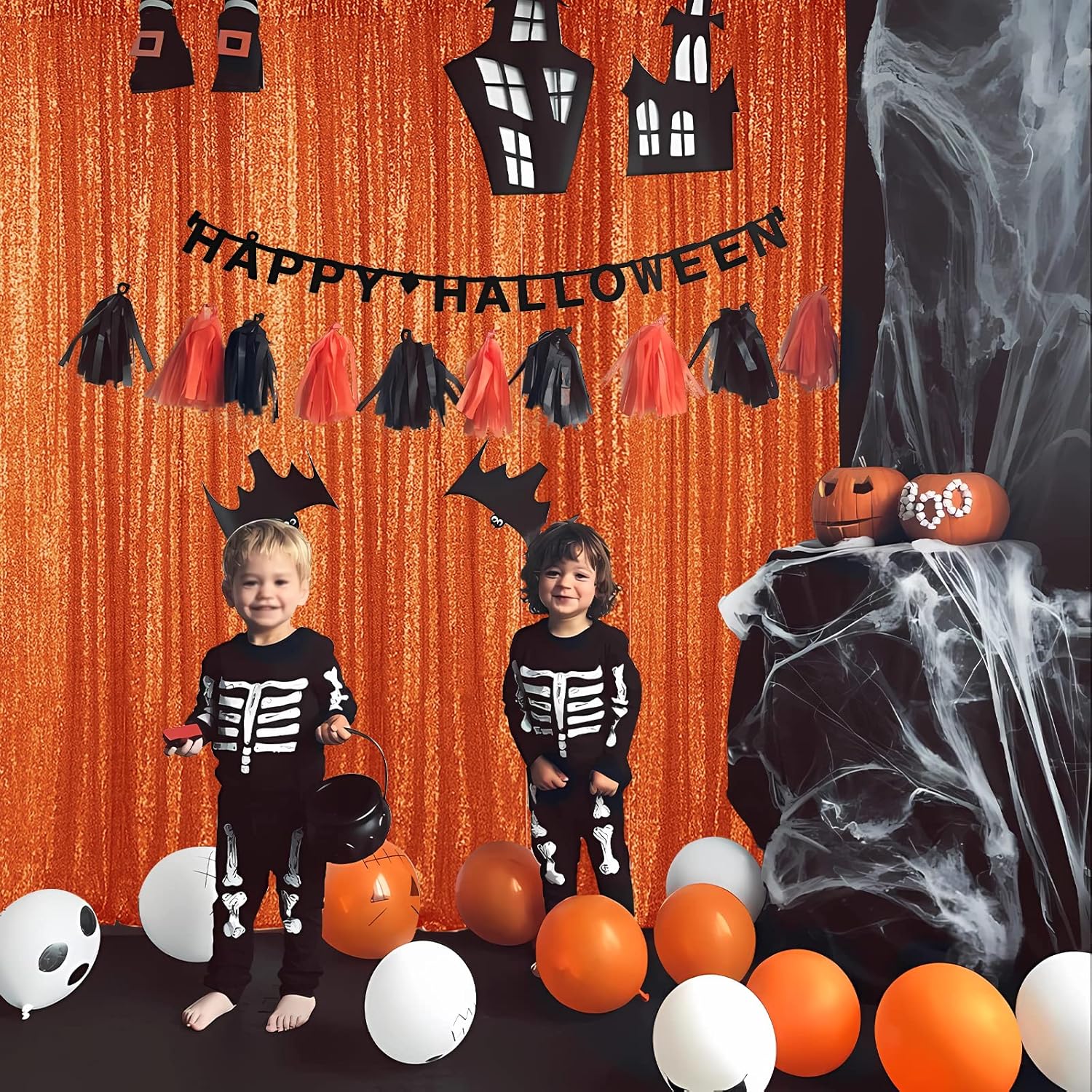 Hahuho Orange Sequin Backdrop Curtain, 4PCS 2FTx8FT Glitter Backdrop Curtain for Parties, Christmas, Wedding, Party Decoration(4 Panels, 2FT x 8FT, Orange