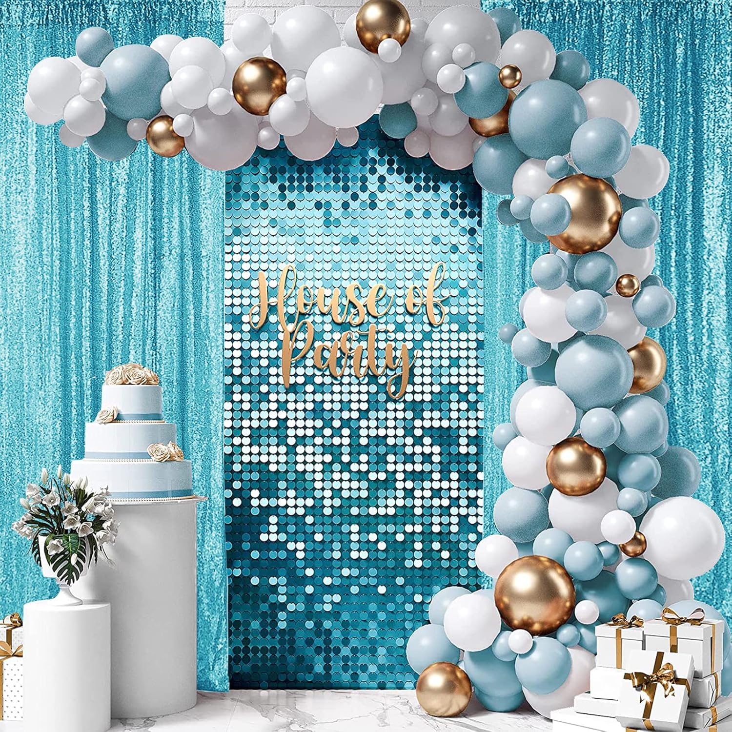 Hahuho Turquoise Sequin Backdrop Curtain, 2PCS 2FTx8FT Glitter Backdrop Curtain for Parties, Christmas, Wedding, Party Decoration(2 Panels, 2FT x 8FT, Turquoise