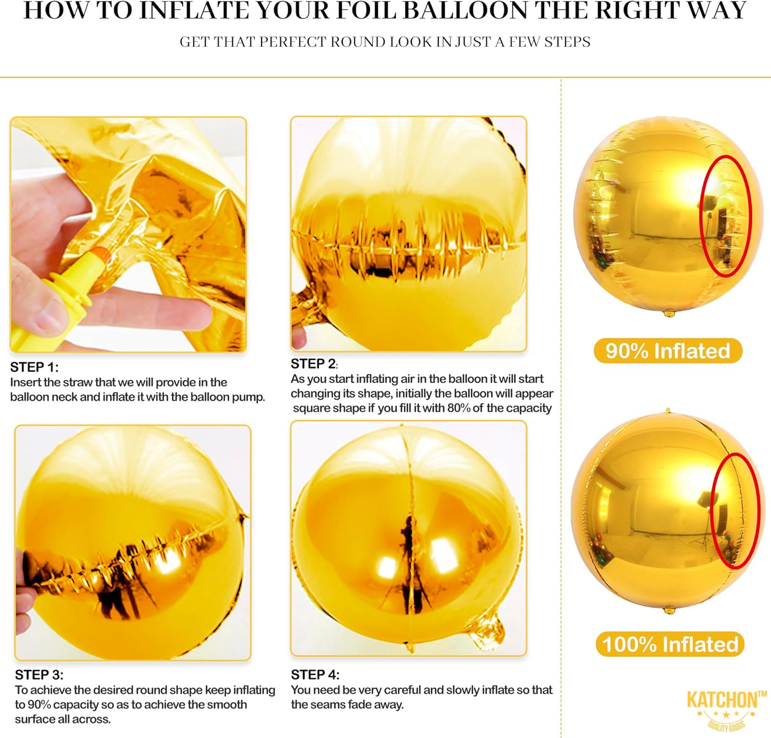 • REUSABLE | STURDY | DURABLE - These big gold balloons are made from the grade "A" quality foil material making it re-usable, durable and sturdy. You can use these 4D gold balloons for oscar themed decorations, hollywood party decorations, globos dorados metalicos for golden decorations. Combine red and gold mylar balloons to make an arch that is ideal for gold party decorations, gold sphere balloons for black and gold happy birthday decorations, halloween decorations, halloween decor for home, fall decor for home, balloons for thanksgiving, or large gold and black balloons.