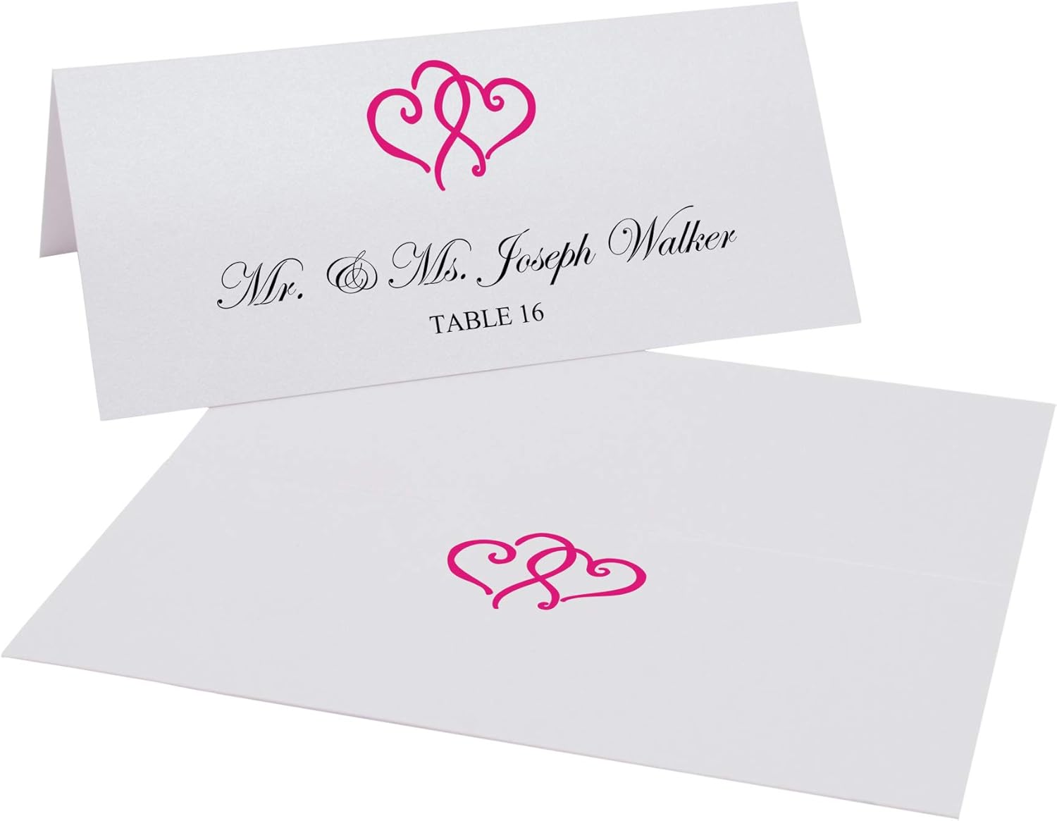 Linked Hearts Place Cards, Fuschia (Choose Color), Set of 25, Pre-cut and Scored - Wedding, Party, Dinner, and Special Events - Made in the USA