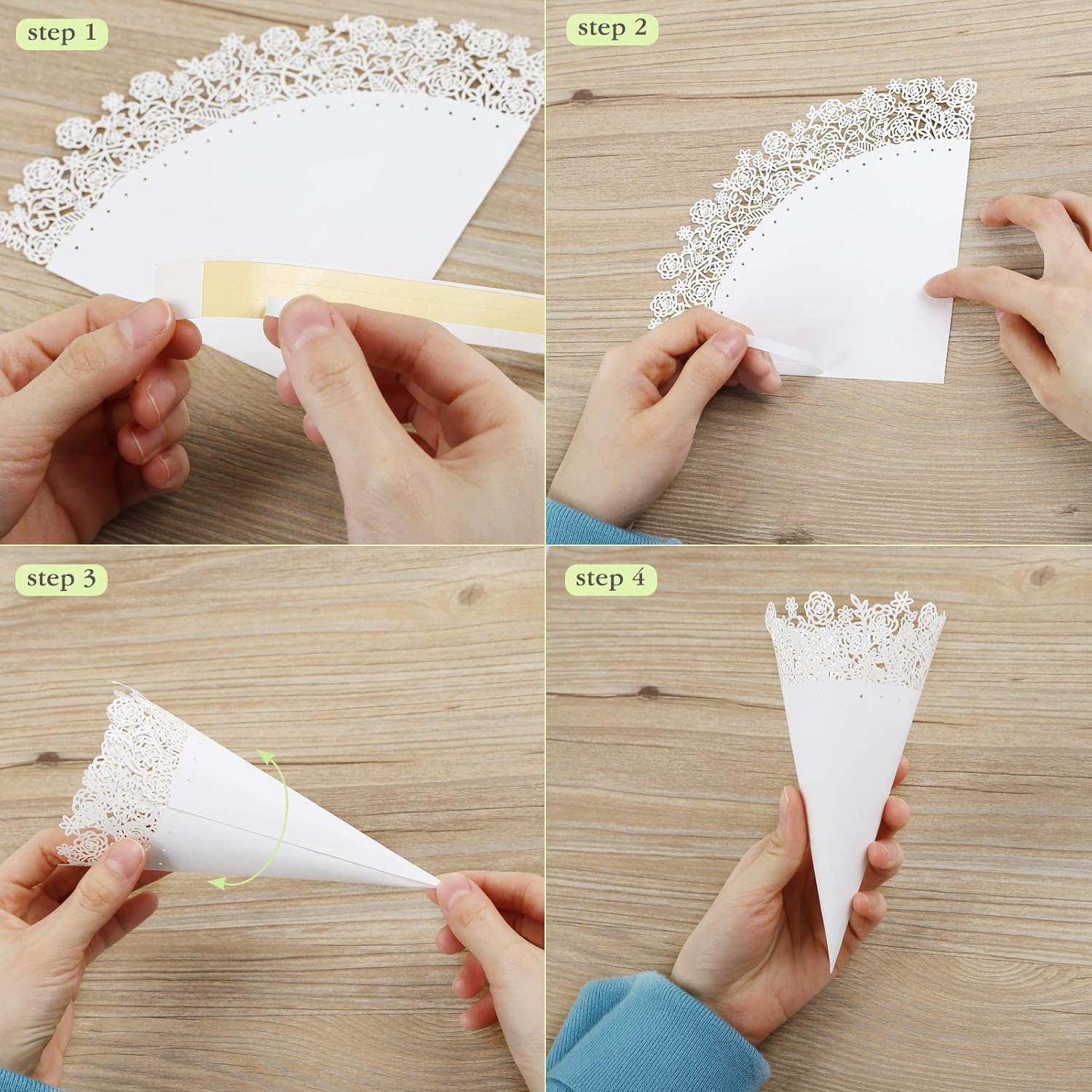 • Package includes: 100 fan-shaped paper confetti cones with strong double-sided tapes, enough for your wedding and buffet.