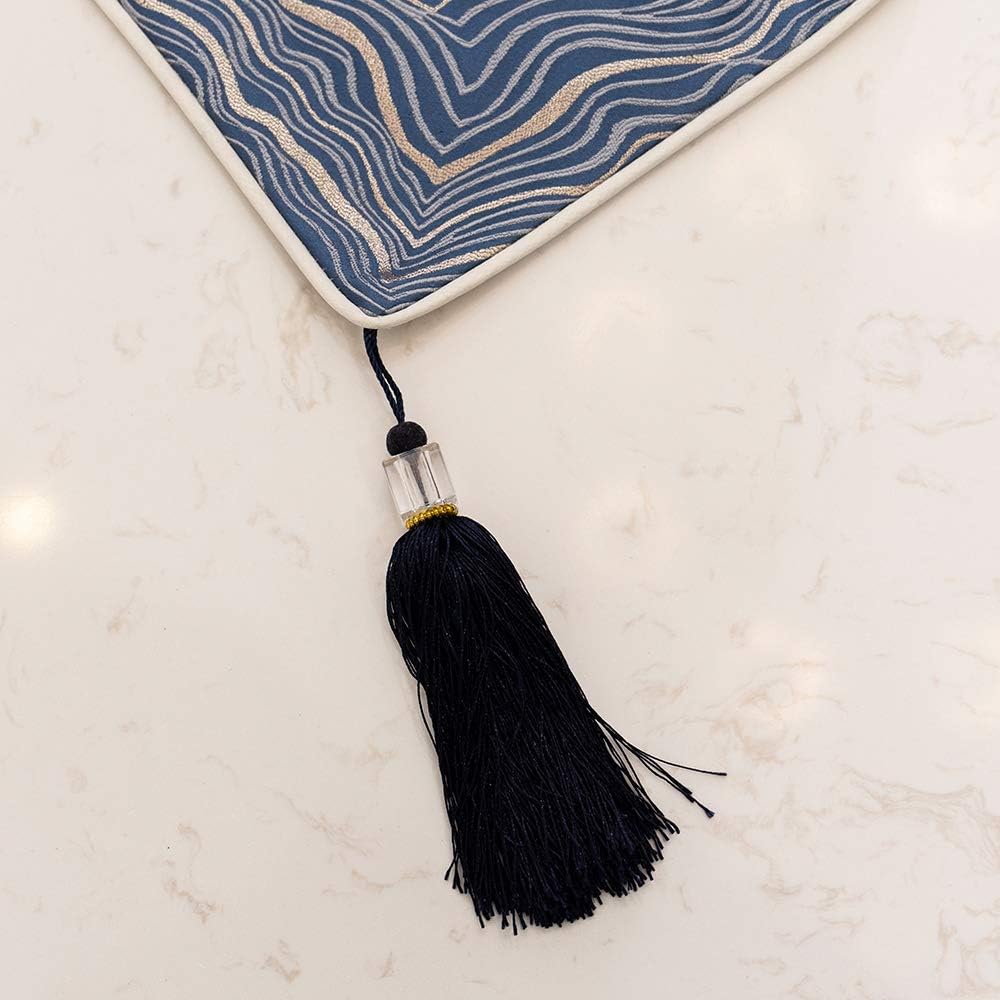 Avigers 12 x 108 Inch Decorative Luxury Abstract Striped Navy Blue Table Runners with Tassels for Home Living Room Bedroom Art Decor Wedding
