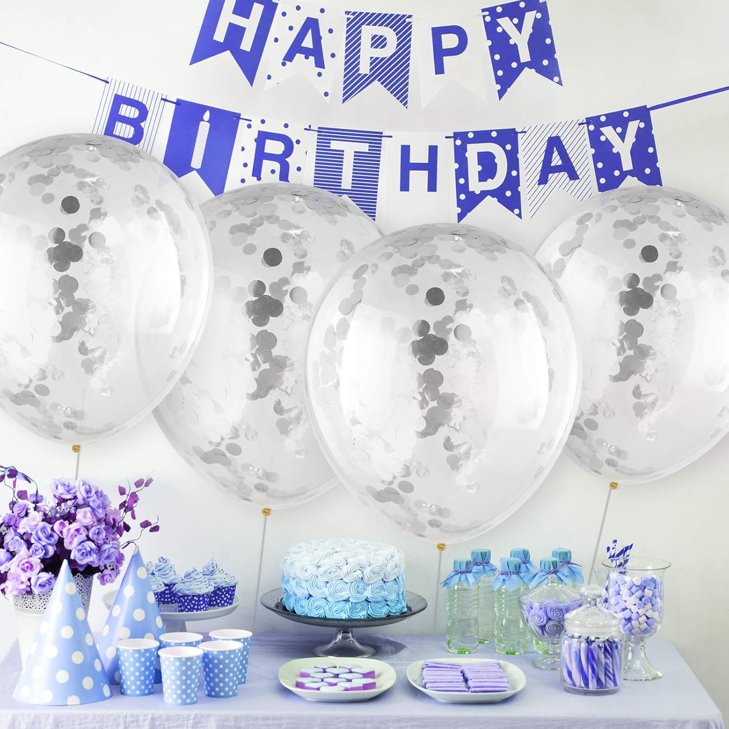 • Glitter confetti balloons: these large latex balloons are designed in classic silver confetti dots, which symbolizes the bright future and good wishes, you can use them to decorate your home or party, regardless of indoors or outdoors, these shiny confetti balloons can provide you with attractive and charming atmosphere