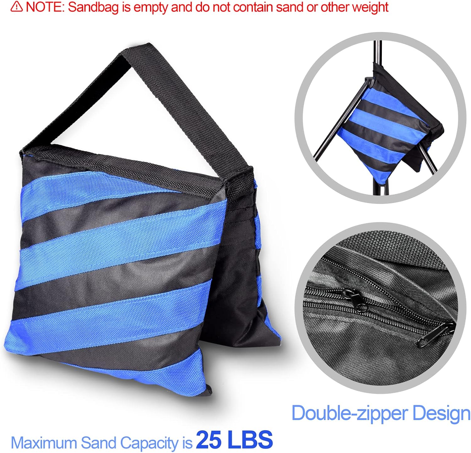 • 【Photography Weight Sandbag】: Premium quality nylon, blue and black stripe, more conspicuous and stabilize photo support equipment. (NOTE: this bag comes empty, please filled with gravel, or any other material to add weight and the maximum capacity is 25 LB.)