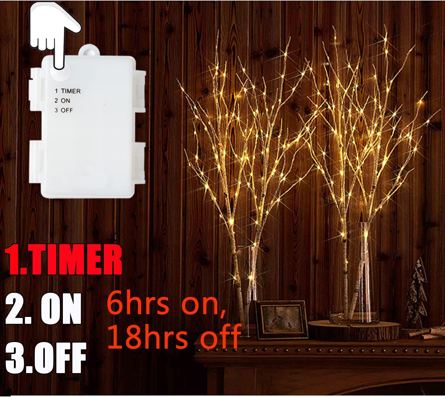• πŸŽ„ Timer Fuction: Battery operated and built in timer function which allows lighting up for 6 hours every day at the same time.(3AA batteries NOT included)