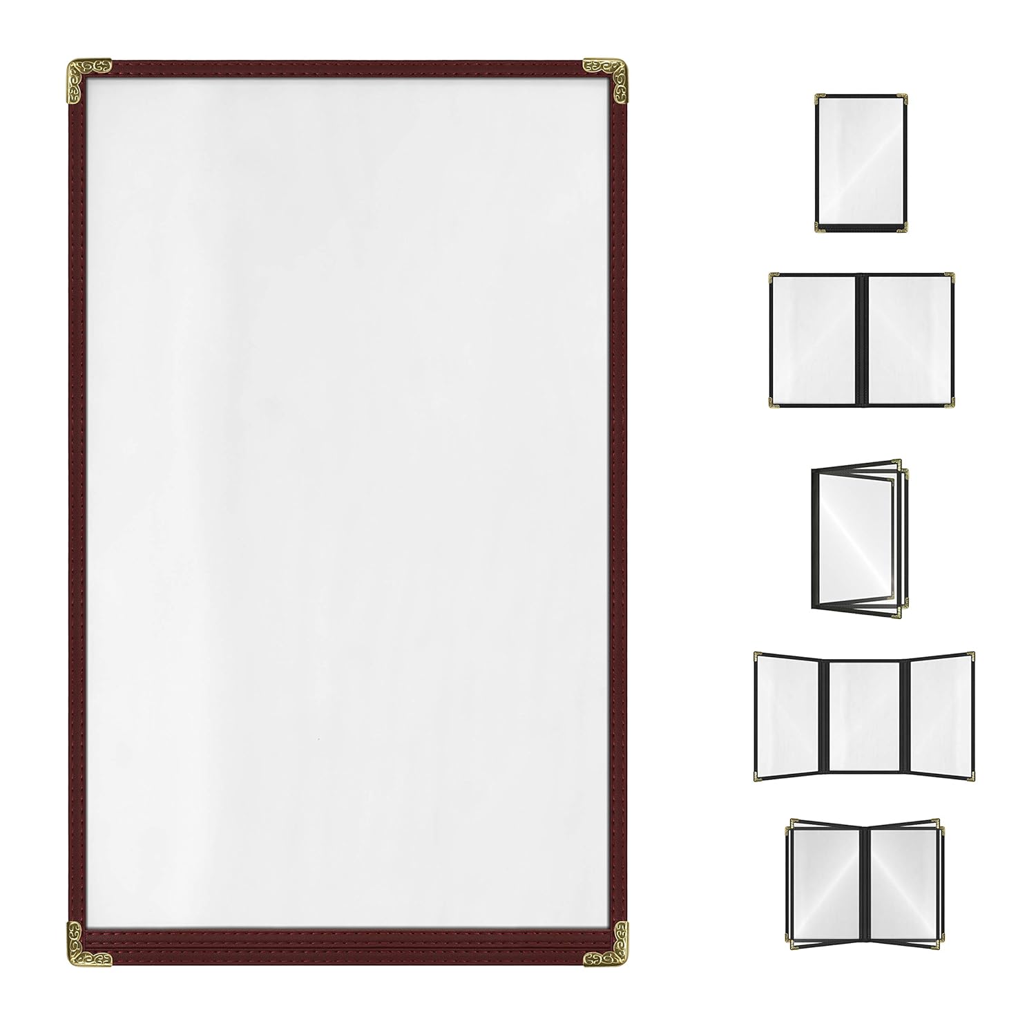 Goodsmart Restaurant Menu Covers – 25 Pack Burgundy 2-View, Top-Loading Menu Holders, Vinyl & Plastic Café Menu Covers, Clear Menu Sleeves, Fits 8.5" x 14", Leather-Style Design, Gold Corners