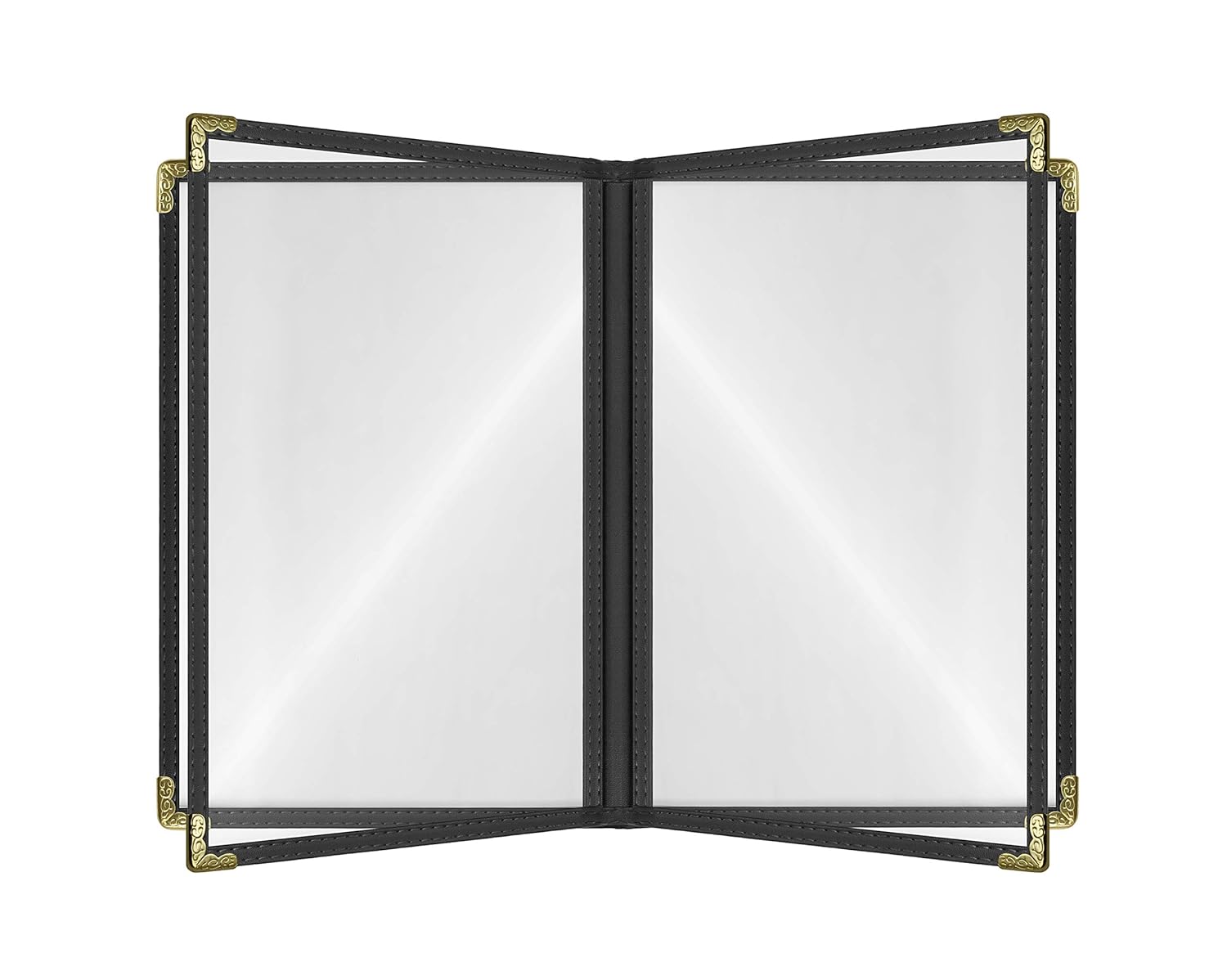 Goodsmart Restaurant Menu Covers - 25 Pack Black 8.5" x 11", 4-Page/8-View, Side-Loading Vinyl Menu Holders with Clear Sleeves, Double-Stitched, Leather-Style Café Covers, Morning Menu Homeschool