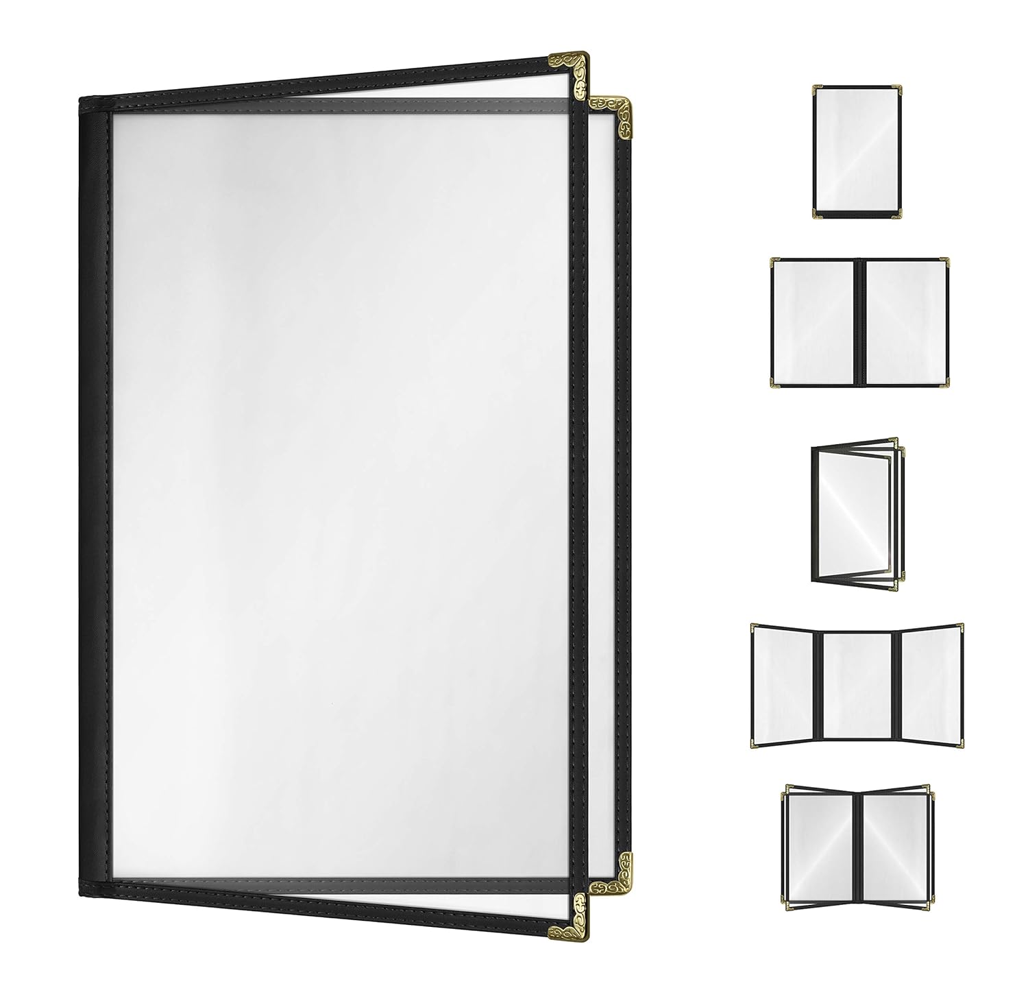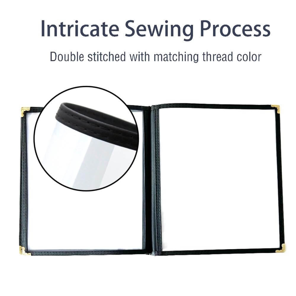 Goodsmart Restaurant Menu Covers – 25 Pack Black 4-View 8.5" x 14", Side-Loading Vinyl & Plastic Menu Holders, Clear Menu Sleeves, Leather-Style Café Covers with Gold Corners
