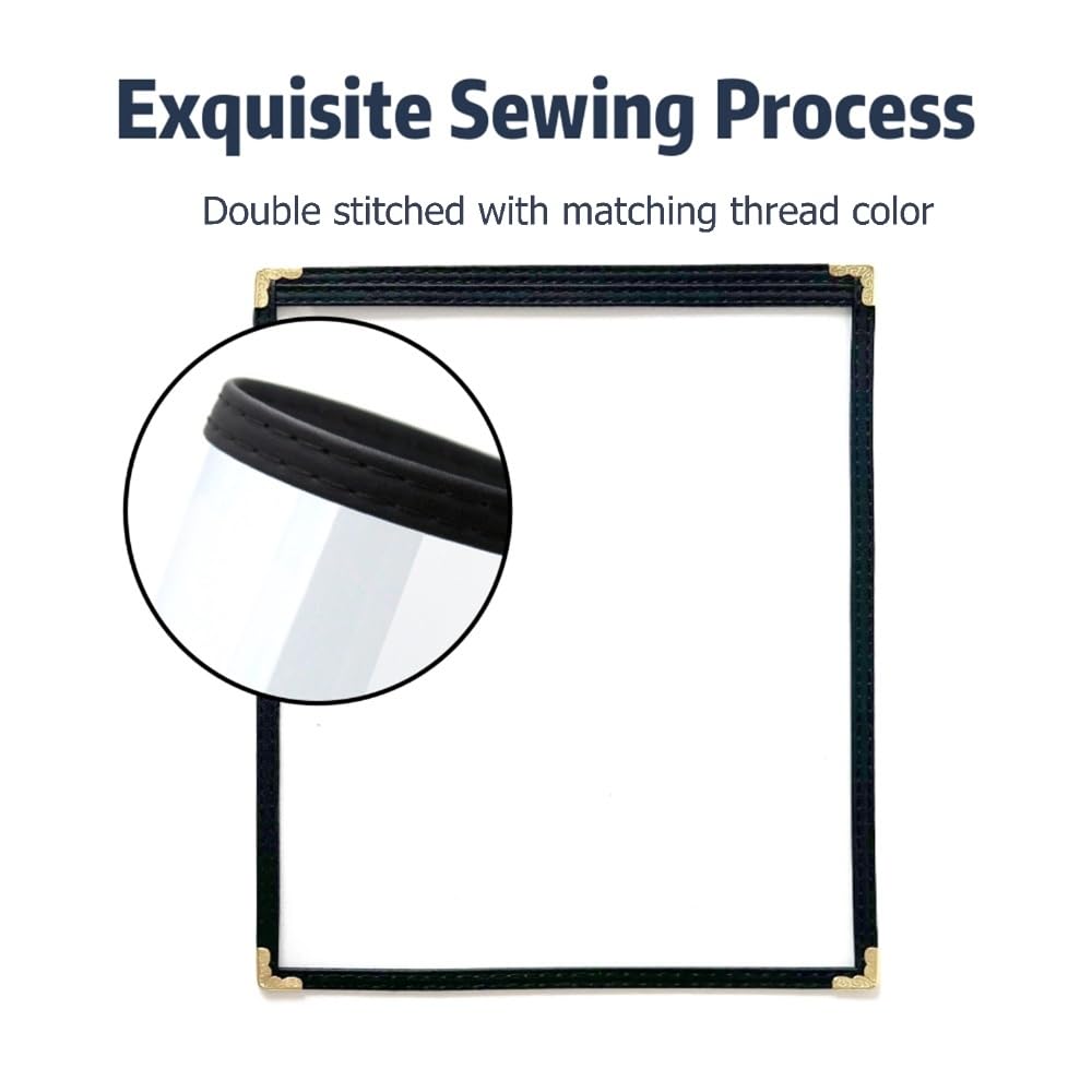 Goodsmart Restaurant Menu Covers – 25 Pack Black 2-View, Top-Loading Menu Holders, Vinyl & Plastic Café Menu Covers, Clear Menu Sleeves, Fits 8.5" x 14", Leather-Style Design, Gold Corners