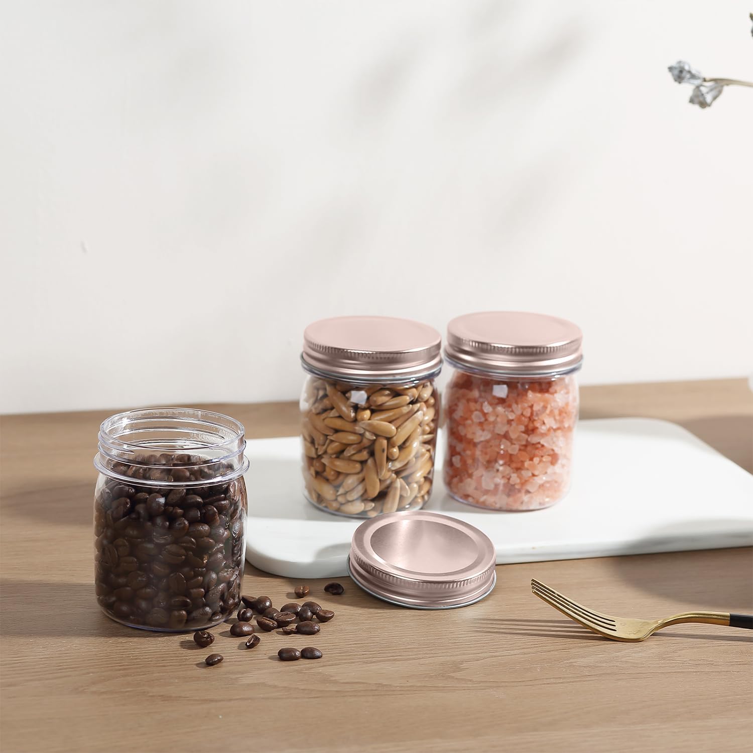 novelinks 8 oz Clear Plastic Jars with Screw-On Lids - BPA-Free Refillable Storage Containers for Slime, Spices, Crafts, Kitchen & Home Organization (16 Pack,Rose Gold)