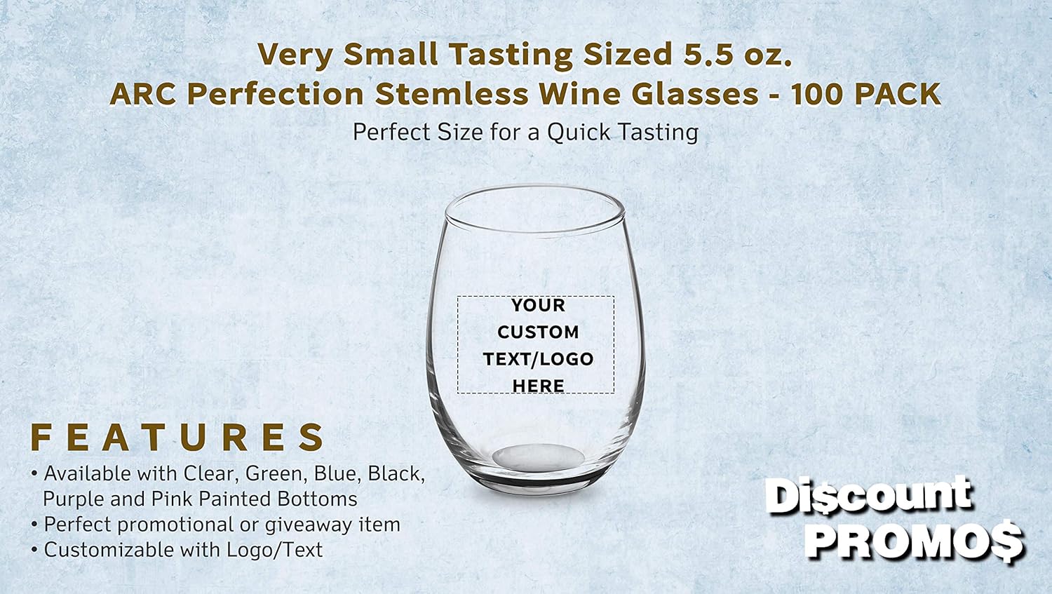 Custom Stemless Wine Glasses by ARC 5.5 oz. Set of 100, Personalized Bulk Pack - Perfect for Hotel, Bar, Restaurant or Lounge - Black
