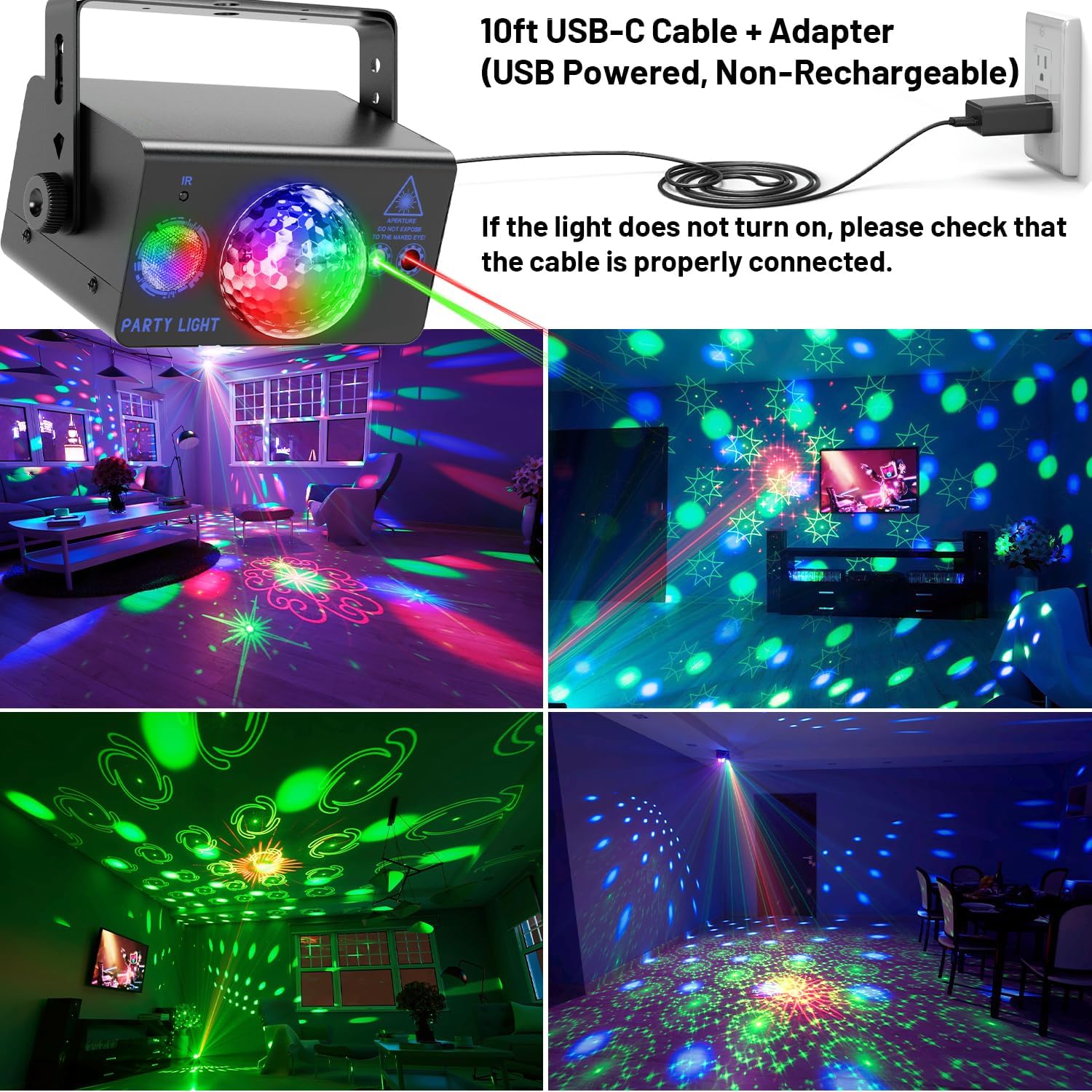 • Sound activated: the Dj equipment, Brand new, high quality, safe and reliable, sound activated, Change colors and speed based on changes in nearby music.