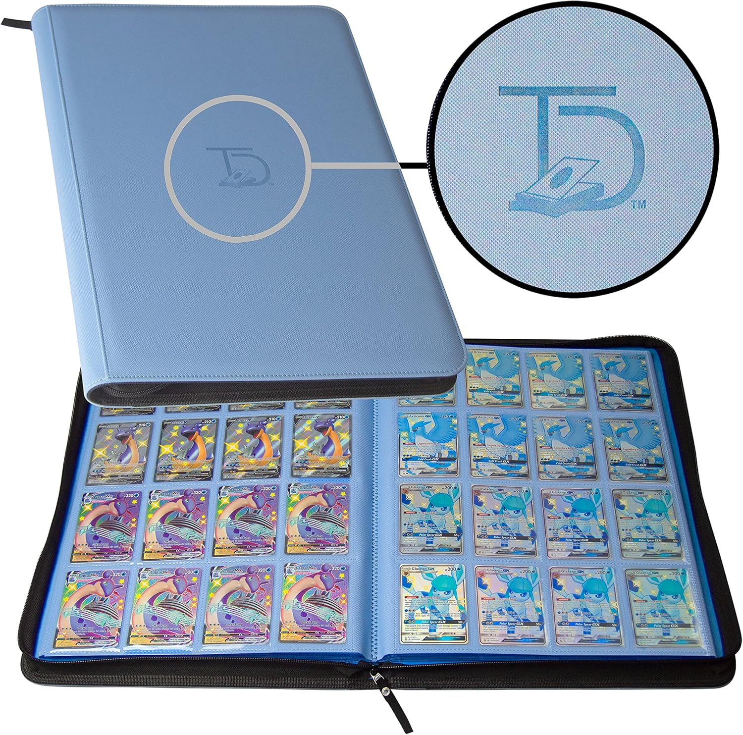 TopDeck 1000 Card Binder - TCG Portfolio - 16 Pocket Card Binder - Ringless Binder Compatible with Pokemon Cards, Yu-Gi-Oh, Magic the Gathering, and More - Side Load Sleeves - Cards Album (Blue)