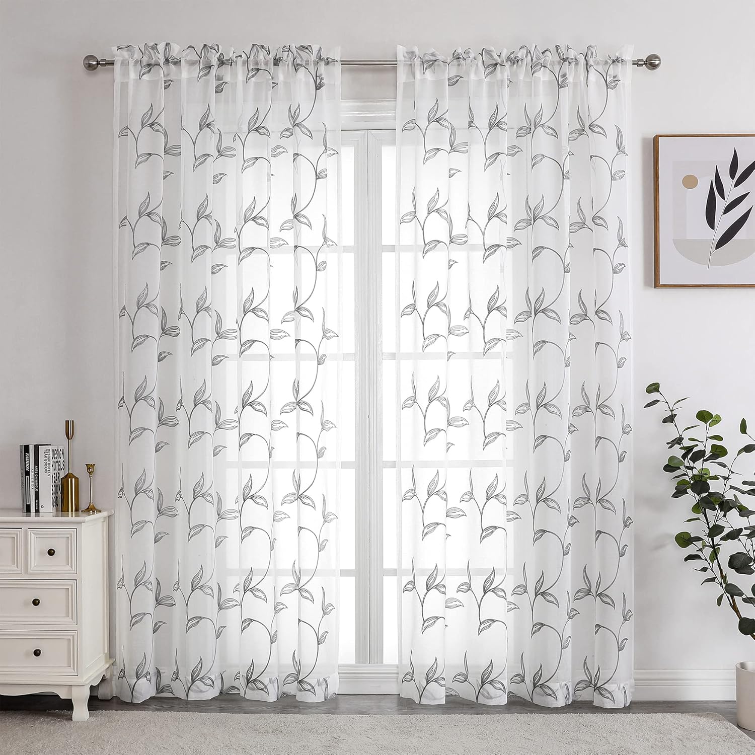 • Elegant embroidered design: window sheer curtains design grey vine leaves embroidered pattern, add style and elegance to living space, perfect for Bedroom, living room, kids room or any window.