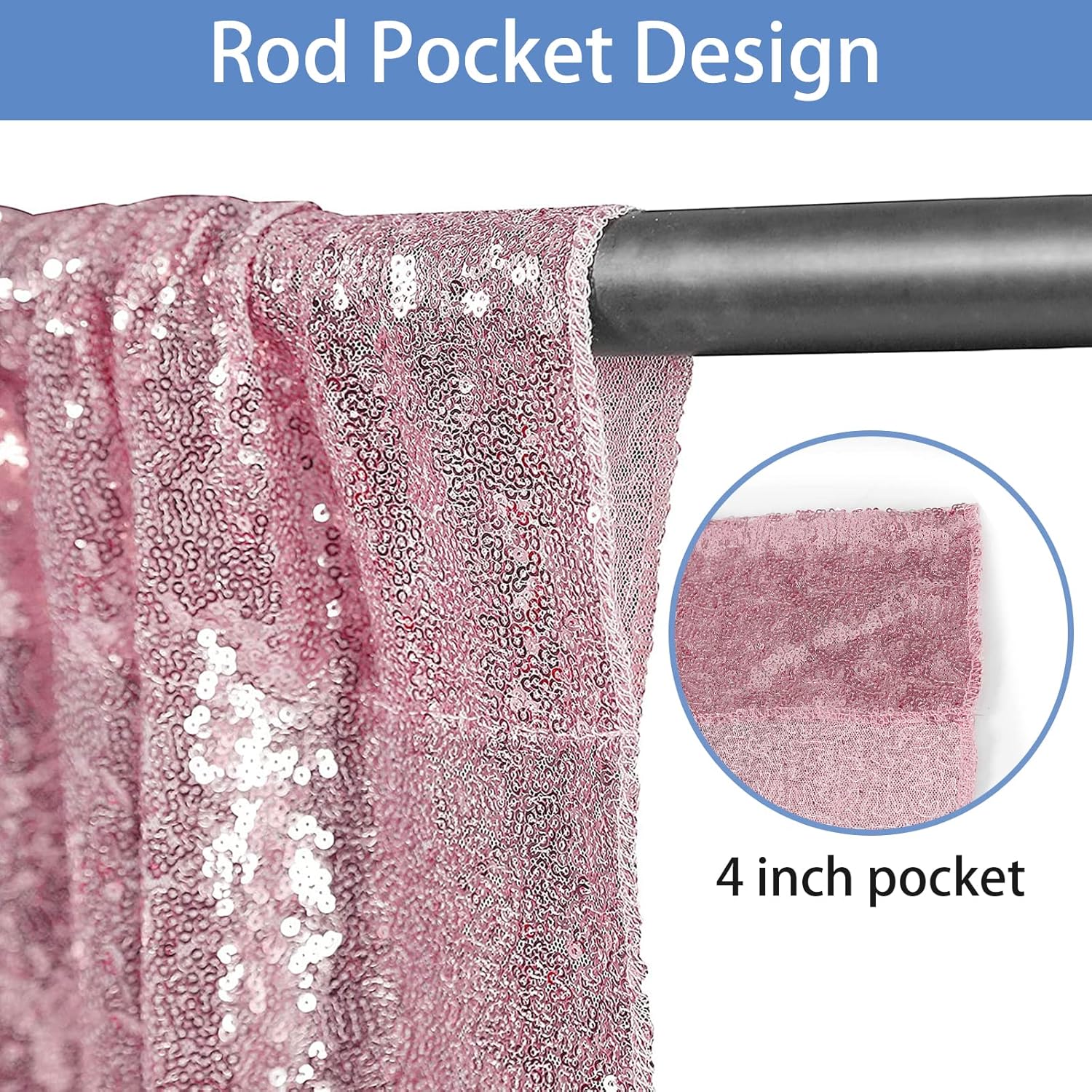 Hahuho Rose Pink Sequin Backdrop Curtain, 2PCS 2FTx8FT Glitter Backdrop Curtain for Parties, Christmas, Wedding, Banquet Decoration(2 Panels, 2FT x 8FT, Rose Pink)