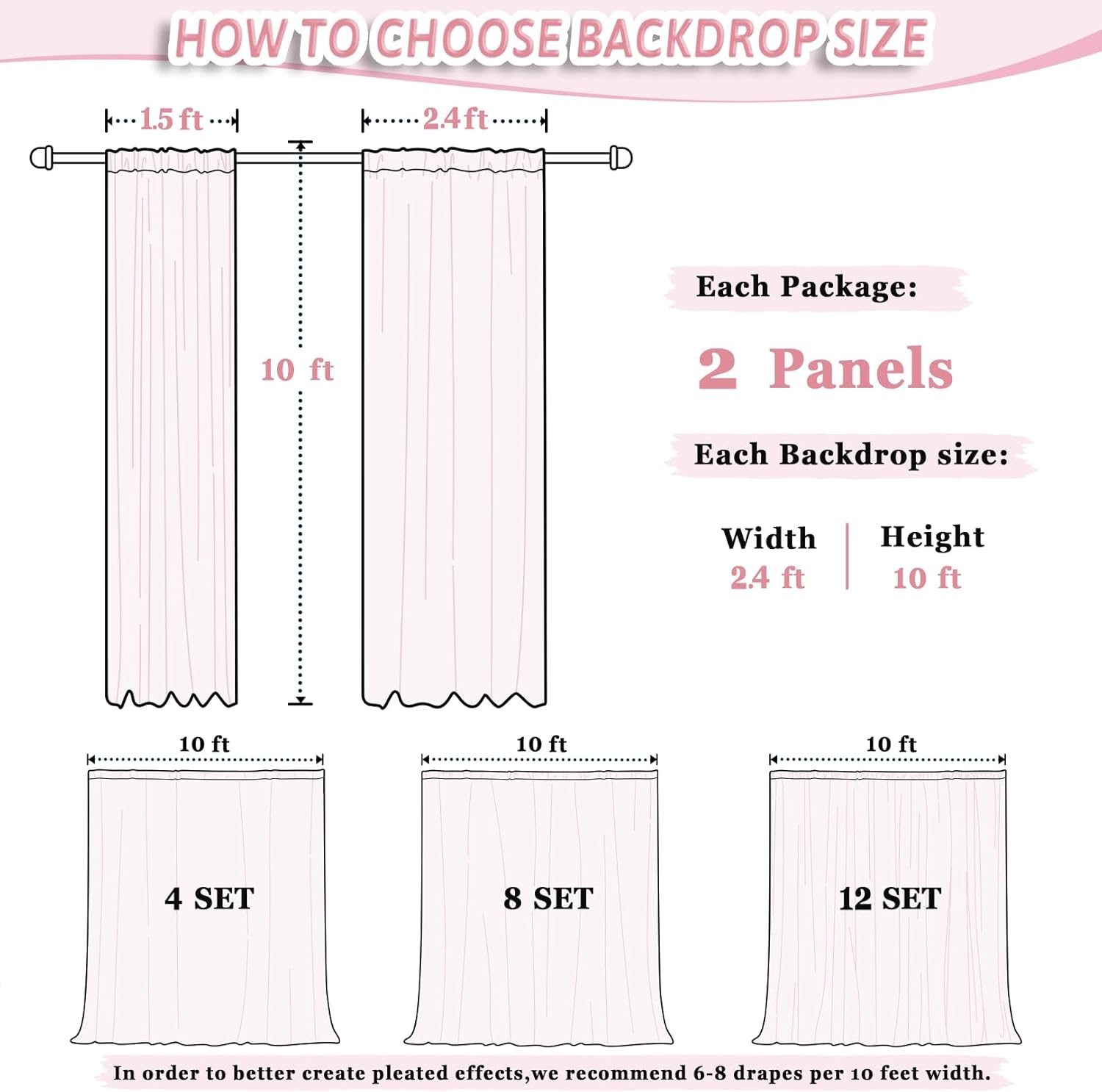 • ★ PREMIUM MATERIAL : Tulle backdrop curtains chiffon backdrop drapes material fabrics has unique sightly shinny looking, Semi-sheer in more of an off white tone. Smoother and more graceful than tulle or nylon curtains. And it's wrinkle-resistant and can be reusable.