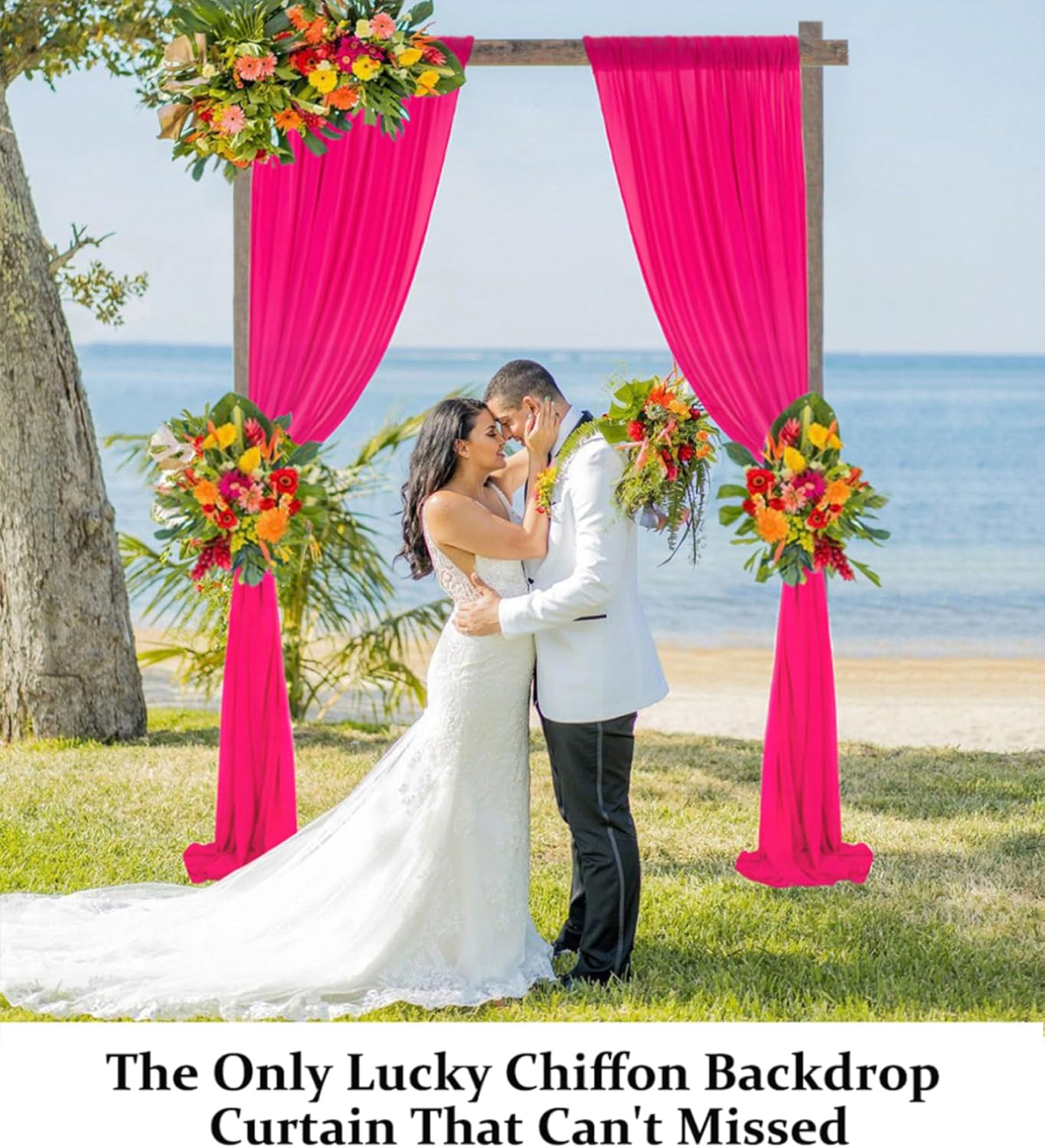 • ★ SHEER CHIFFON CURTAINS :Includes 2 Panels Width 29 Inches (total width 58 inches for 2 panels) chiffon backdrop curtain hot pink color--Different electronic devices seeing the image colors will different . Please refer to the actual product for specific color.