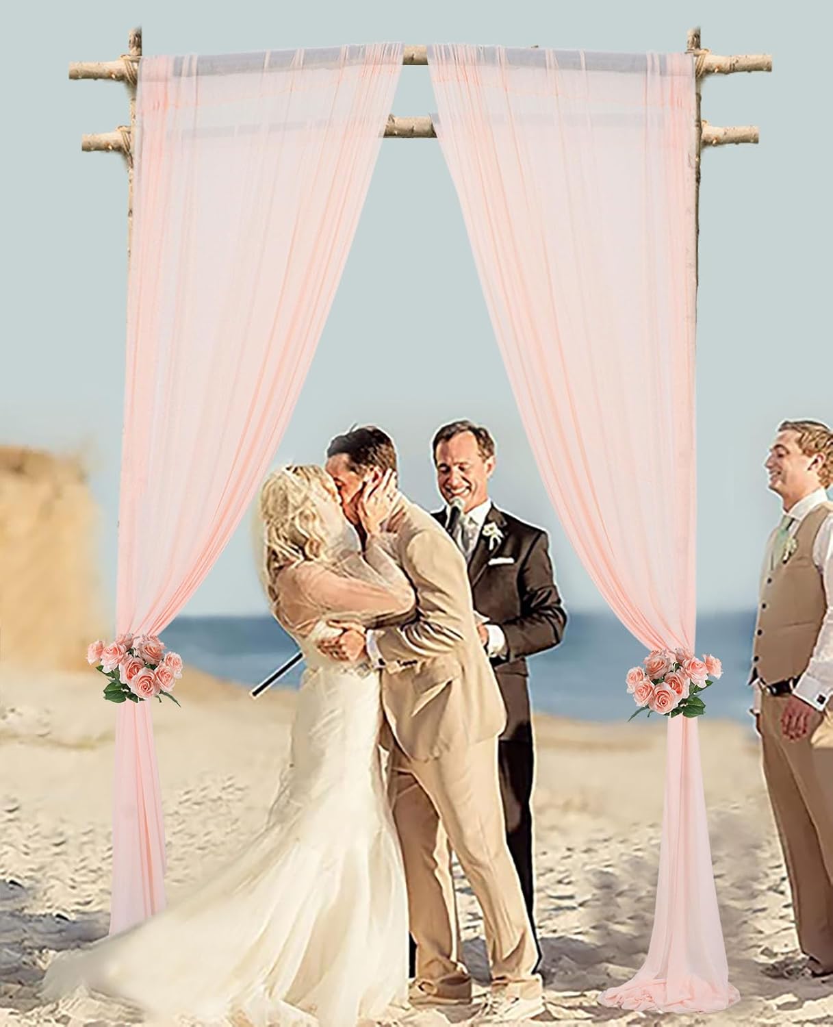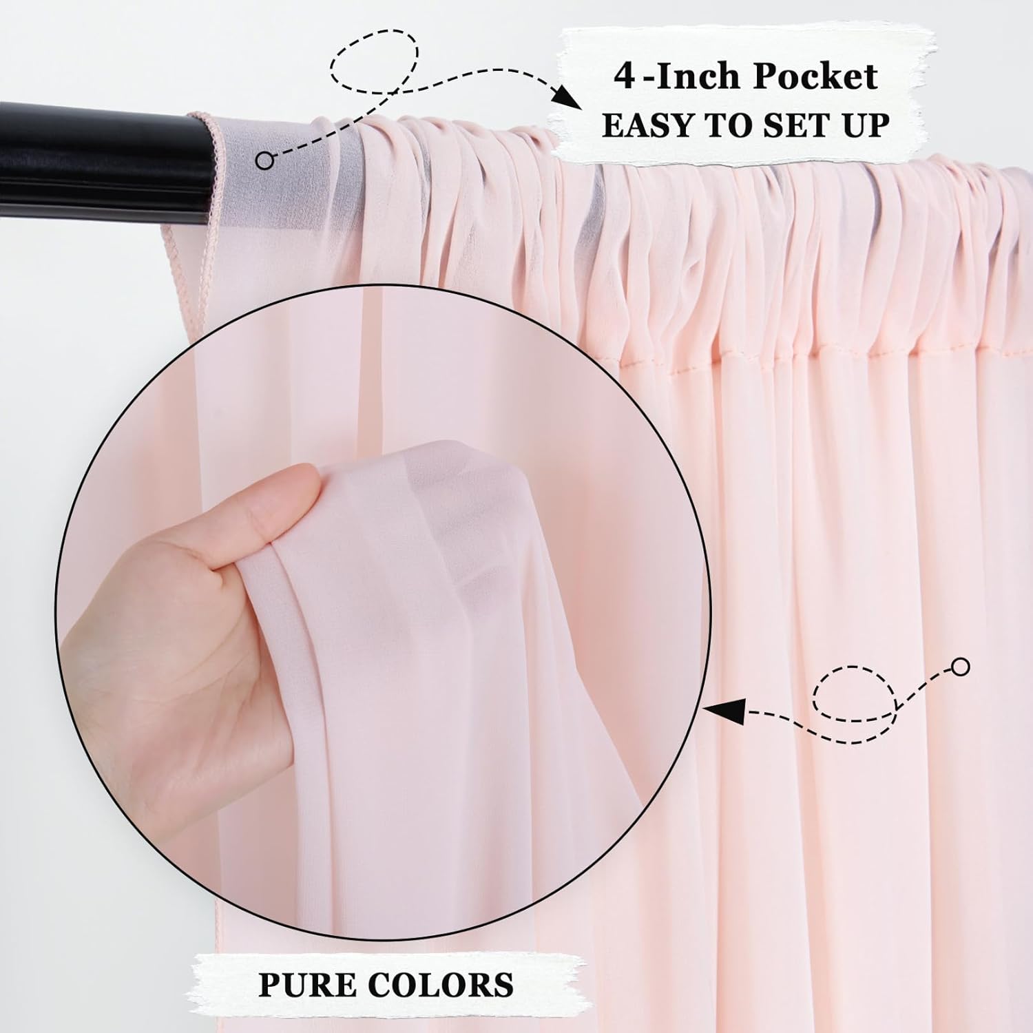 • ★ SHEER CHIFFON CURTAINS :Includes 2 Panels Width 29'' by 96'' Long chiffon backdrop curtain Peach Sheer Curtains For Wedding Photography Backdrop.