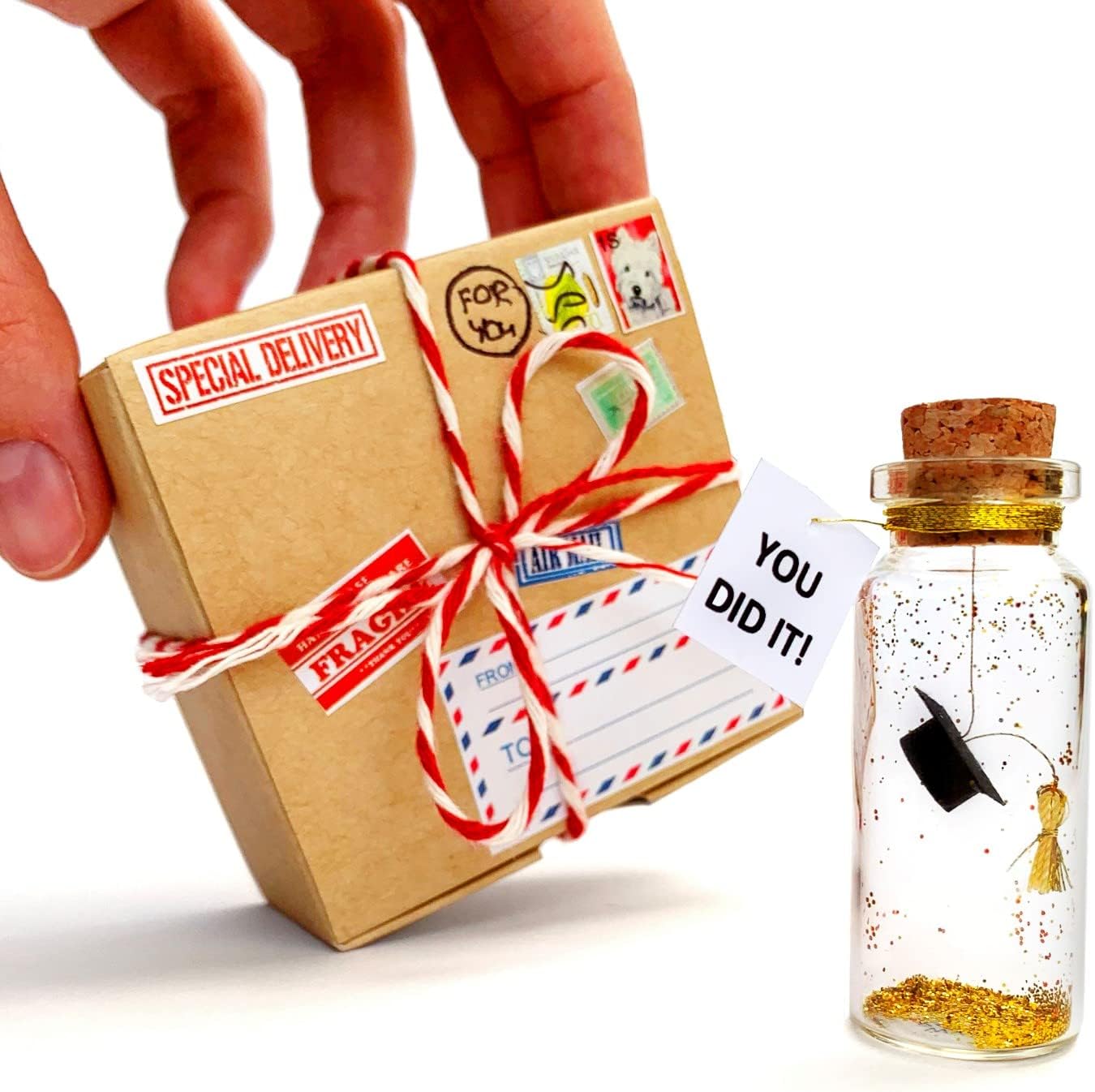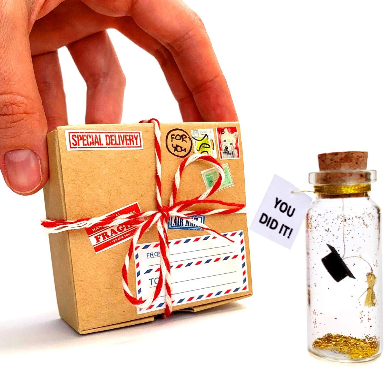 Kseniya Revta Inspirational Message in a Bottle Gift Idea - Classy Gifts for Friends and Family - Unique Boyfriend Girlfriend Presents (Black Graduate Cap - You Did It, in Craft Gift Box)