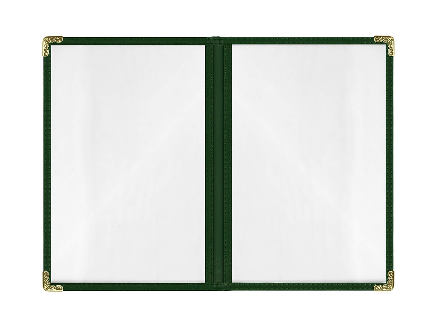 Goodsmart Restaurant Menu Covers – 25 Pack Green 4-View, Side-Loading Menu Holders, Vinyl & Plastic Café Menu Covers, Clear Menu Sleeves, Fits 5.5" x 8.5", Leather-Style Design, Gold Corners