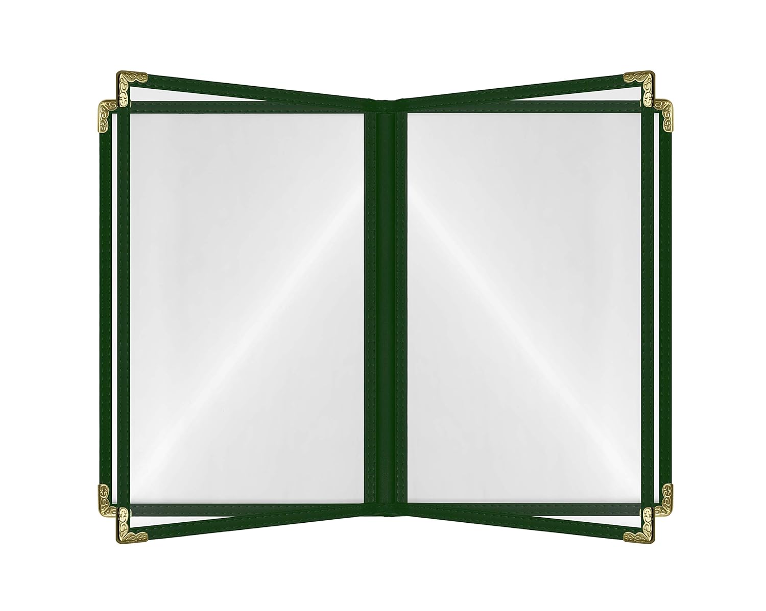 Goodsmart Restaurant Menu Covers – 25 Pack Green 8-View Booklet 8.5" x 14", Side-Loading Vinyl & Plastic Menu Holders, Clear Menu Sleeves, Leather-Style Café Covers with Gold Corners