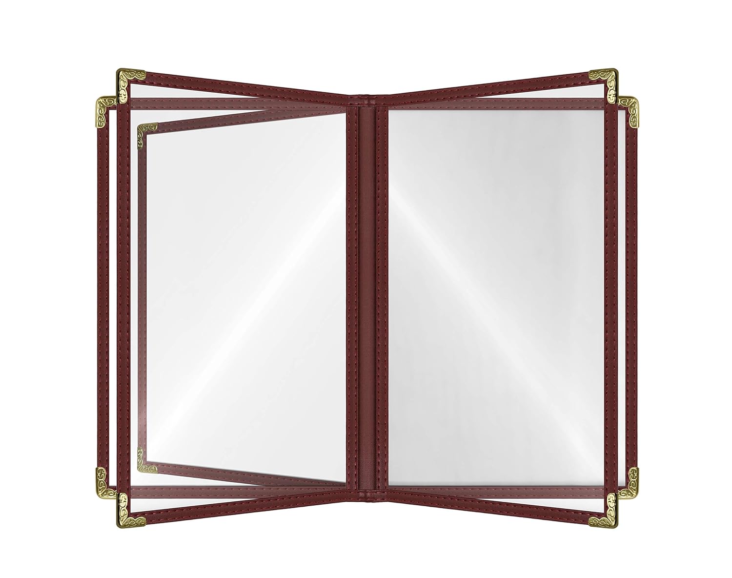 • ✅Sophisticated Burgundy Aesthetic: Designed with a deep burgundy trim and elegant gold decorative corners, these menu covers exude a refined and professional appearance, making them perfect for fine dining establishments, cafes, or upscale bars.